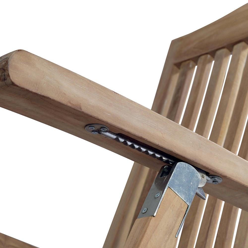 Lænestolen er justerbar , så du kan finde den perfekte position for maksimal komfort, uanset om du vil læse, solbade eller tage en lur. De ergonomiske lameller giver optimal støtte, mens den solide teak-struktur sikrer stabilitet og robusthed.