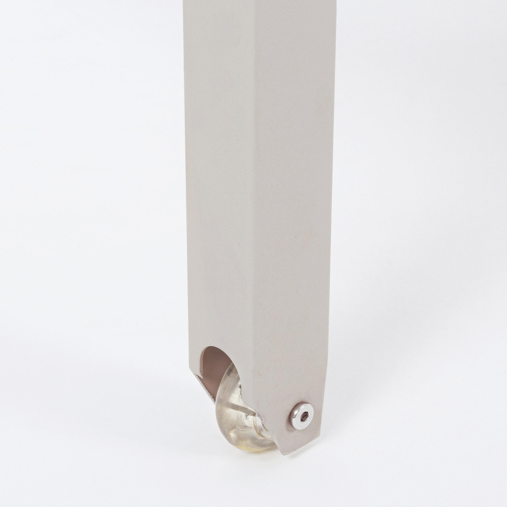 aluminiumsstruktur (polyester). Sæde og ryg i 1x1 tekstilene. Plasthjul og rustfri stålskruer. Liggende ryglæn (6 positioner). Kan stables.