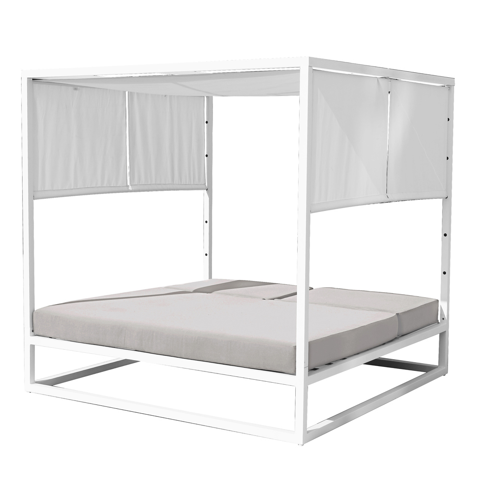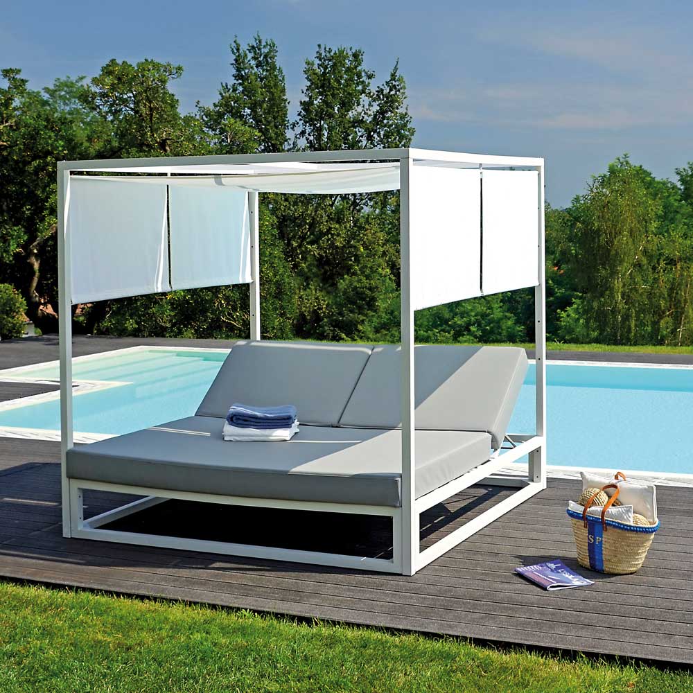 Udendørs daybed med hvid aluminiumsstruktur og dobbelt tilbagelænet ryglæn.