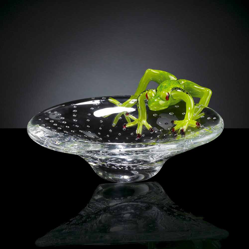 Dekorativt ornament i form af en bakke med frø i glas Lavet i Italien, dyrebar.