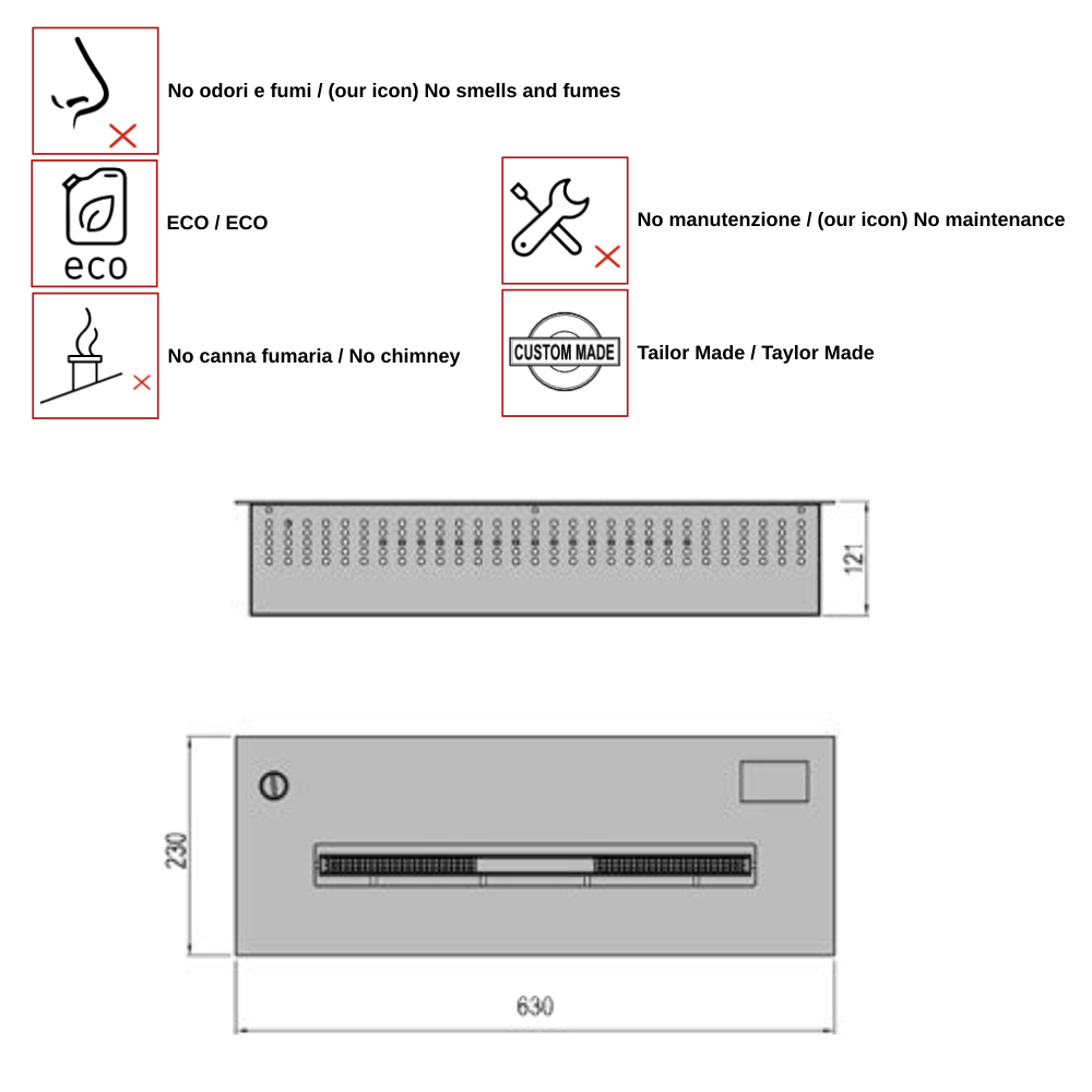 Bemærk: Du kan modtage brænderen metal container til at måle. For at modtage mere information på: clienti@viadurini.it
