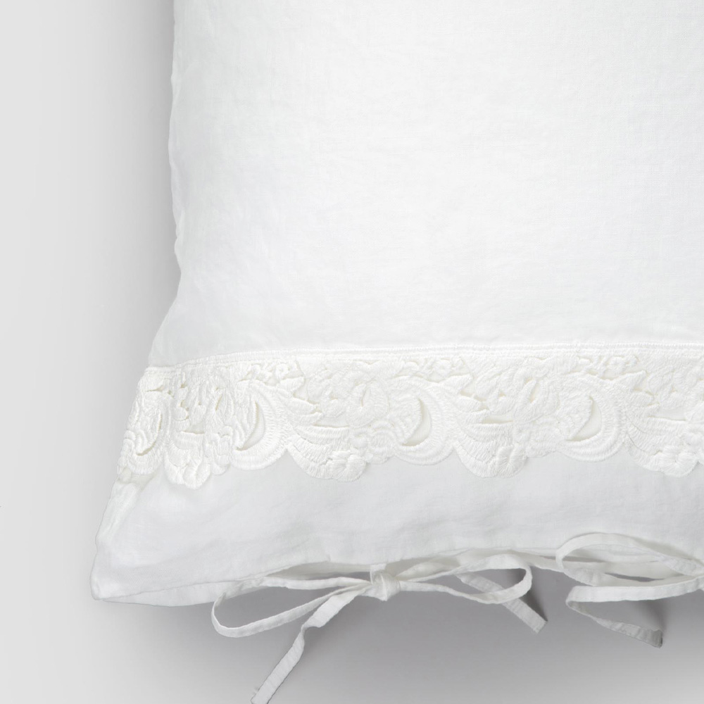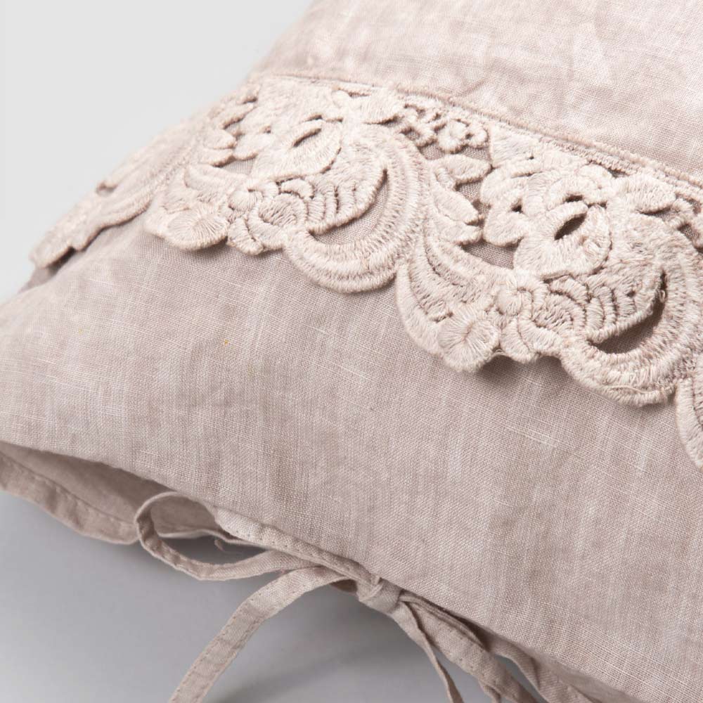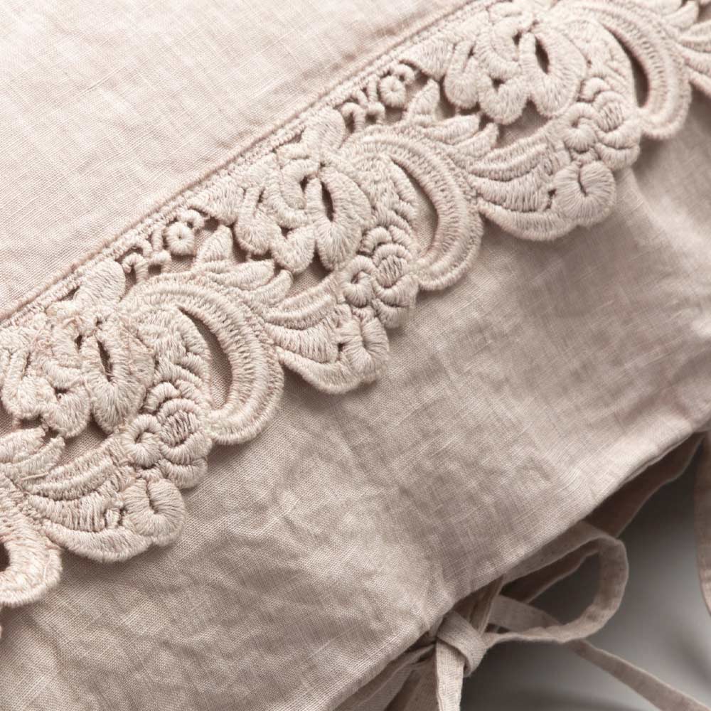 pudebetræk i linned, der er pyntet med