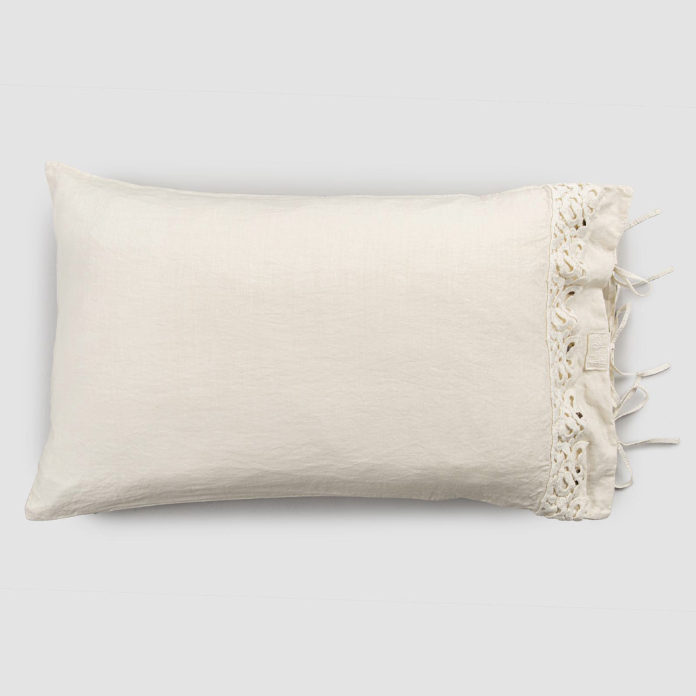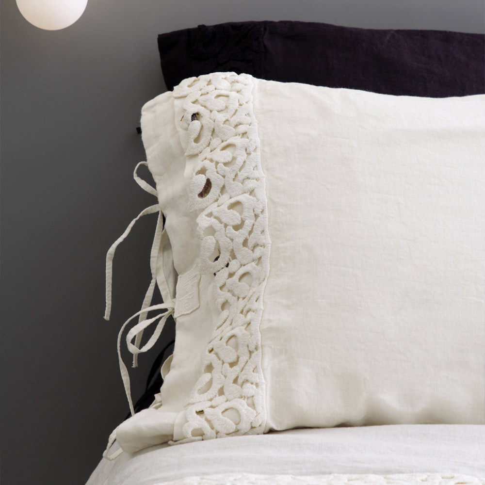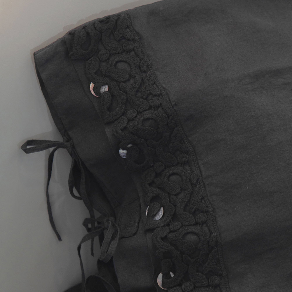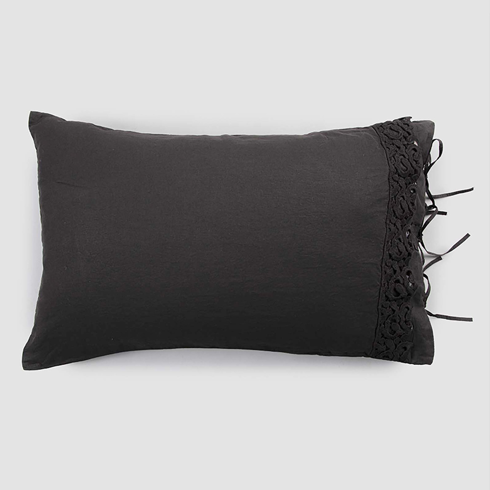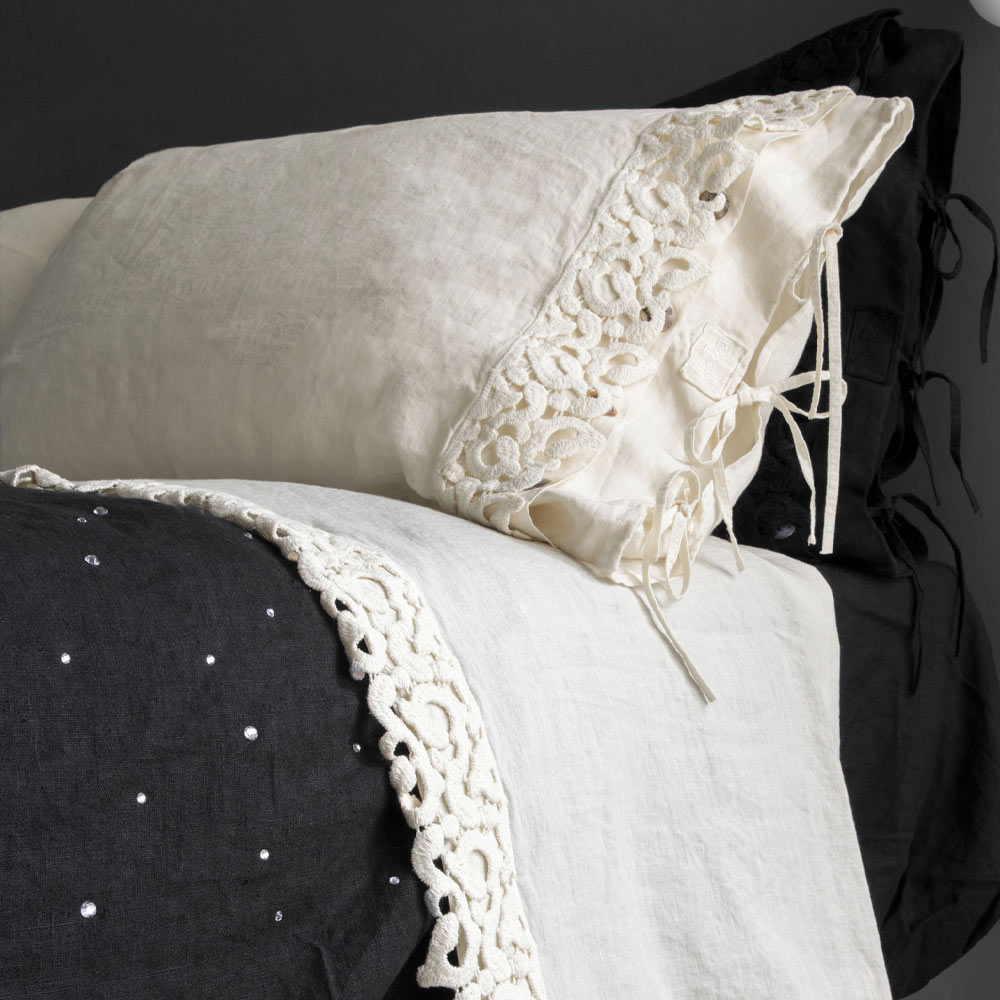 Pudebetræk i sort linned eller smør med digtblonder, luksusartikler lavet i Italien.