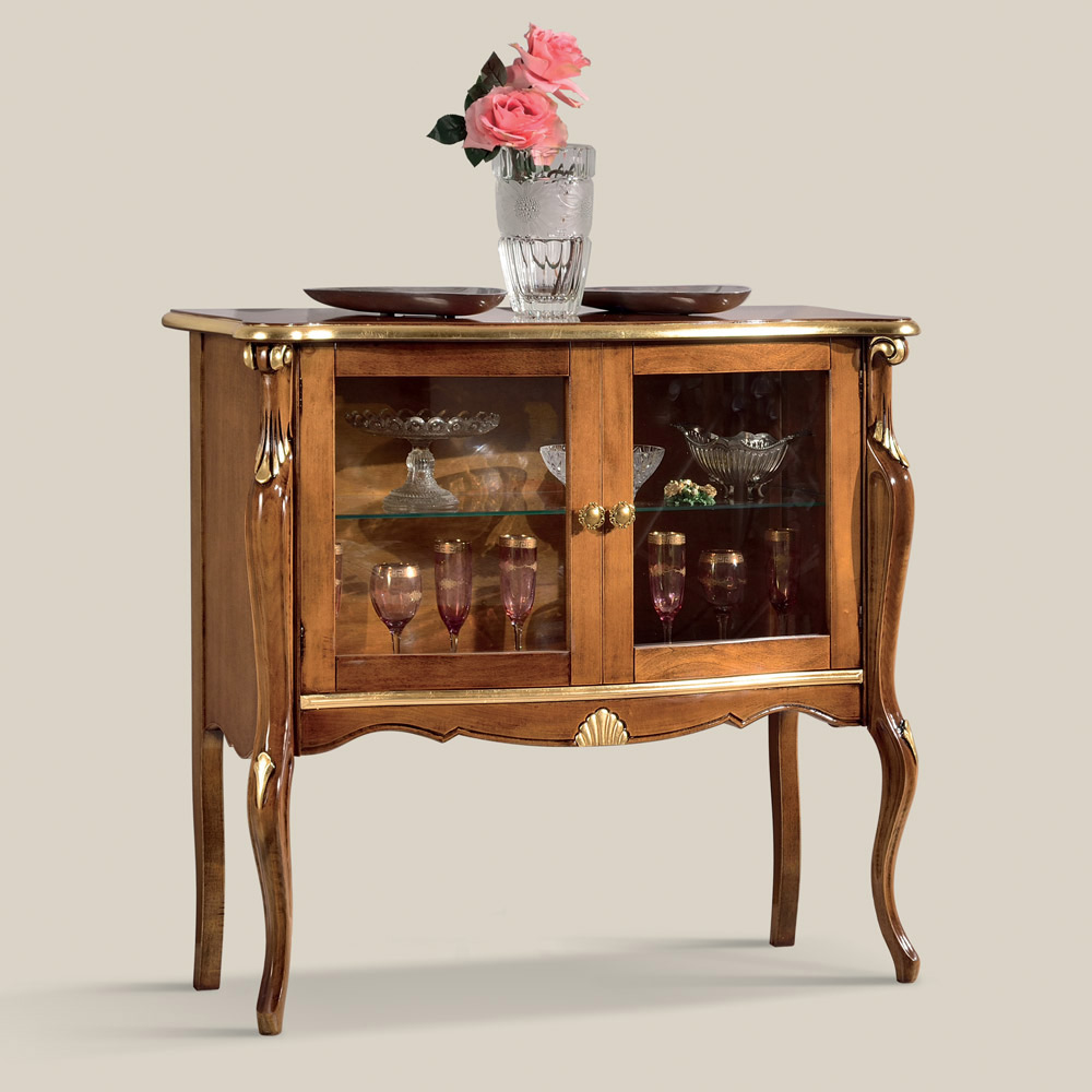 Vitrineskab i klassisk stil lavet af træ og komplet med 2 elegante glaslåger, ideel til at dekorere din
