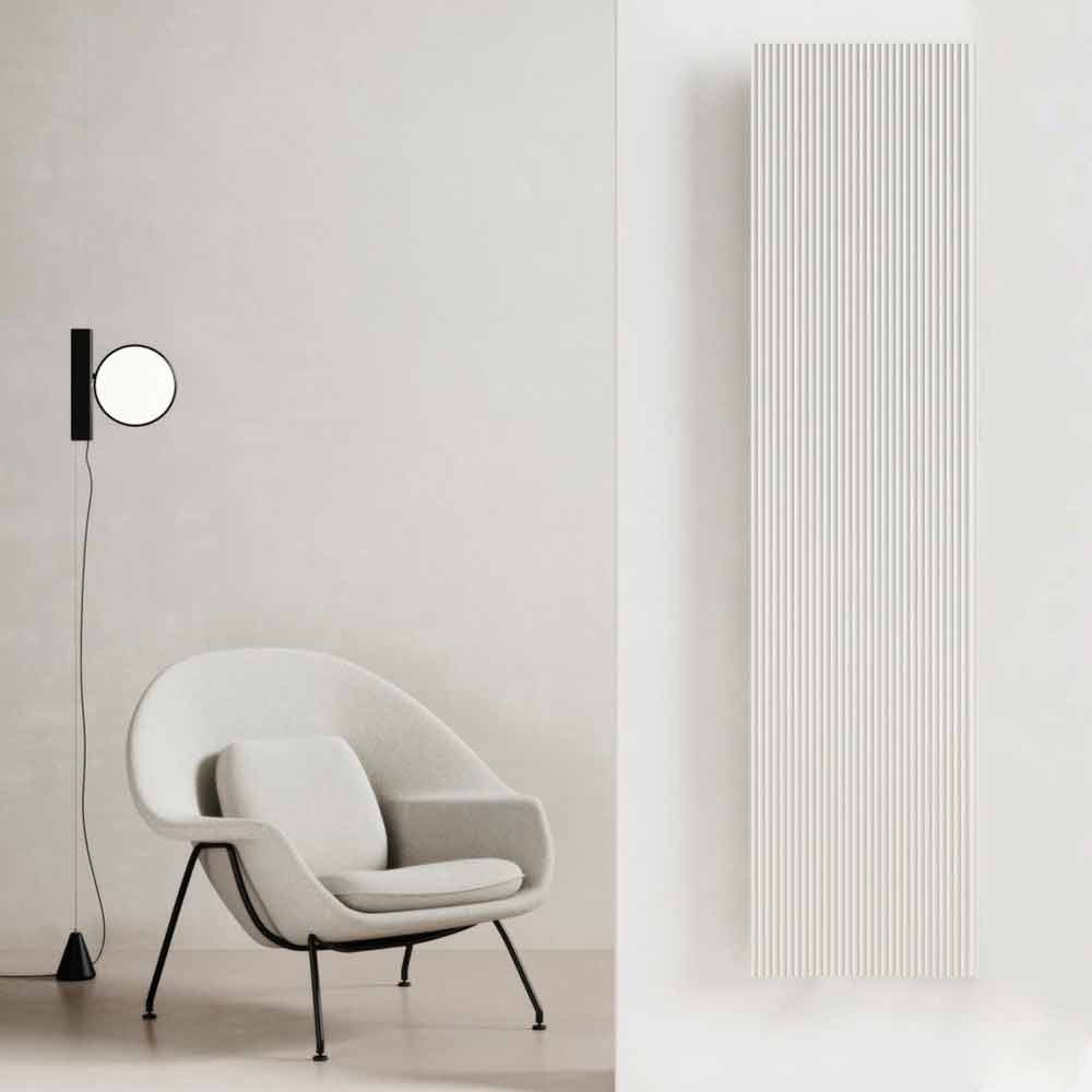 elektriske radiator har et moderne design, hvor den virkelige hovedperson er arkitekturen, præget af linjer med en vekslende rytme, der skaber lysspil og dialoger med det omgivende rum.