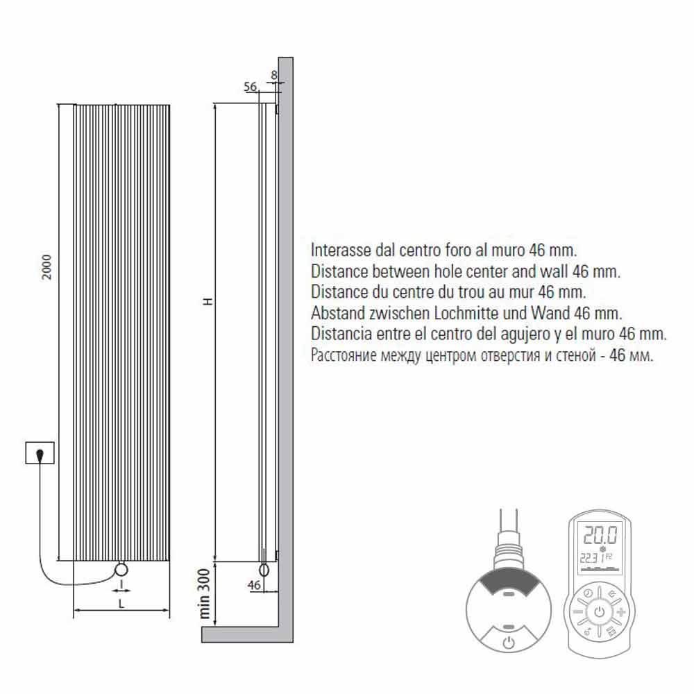 Elektrisk vægmonteret aluminiumskøler, moderne design, fremstillet i Italien.
