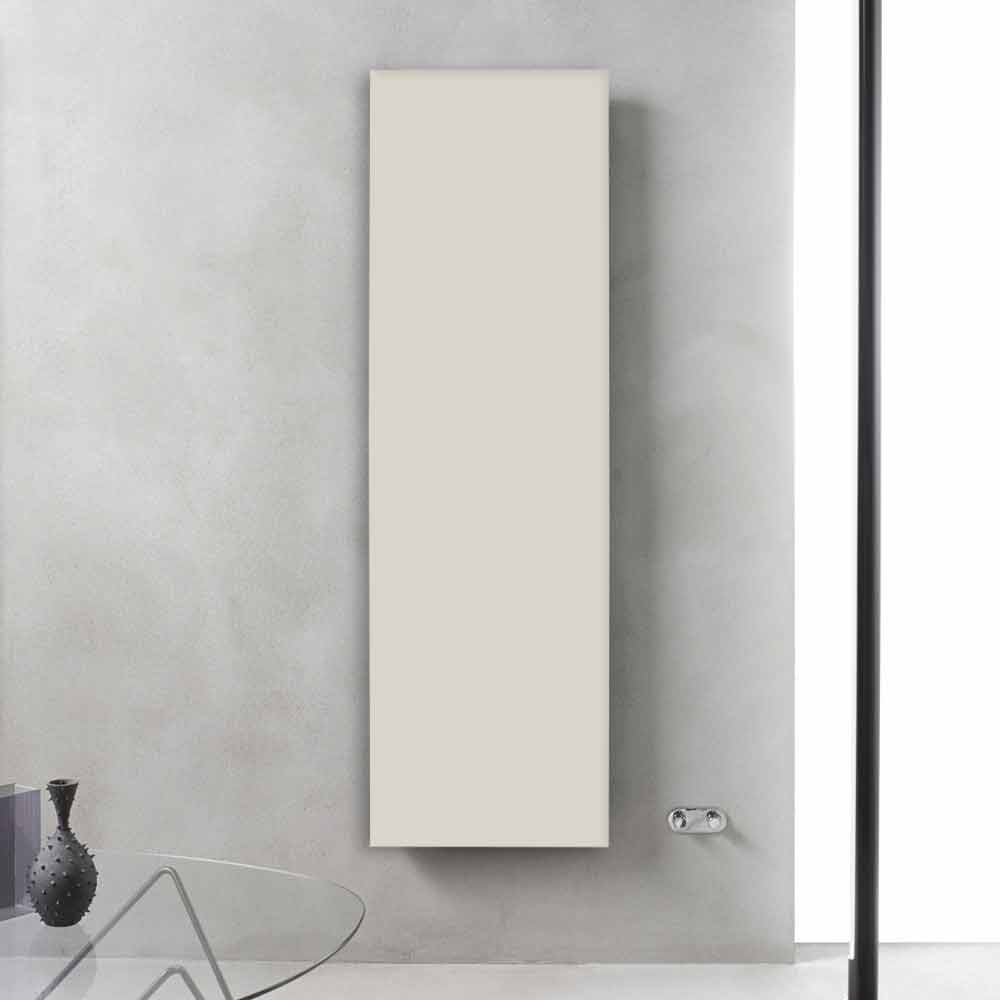Vægmonteret radiator i moderne design i gråhvidt stål fremstillet i Italien.