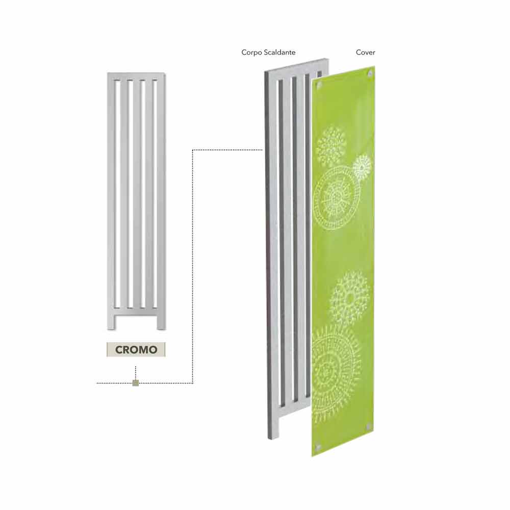 Radiator med varmekrop i krom stål og dækning i stålplader kantet og lakeret, lodret, i den elektriske version. Blanding af materiale mellem opvarmningsstrukturen og dækpladerne i en perfekt balance mellem æstetik, funktionalitet, pleje og forfining af detaljer. Klæd det miljø, hvor du bor med News Dress. Vælg den farve, der passer til dig!
