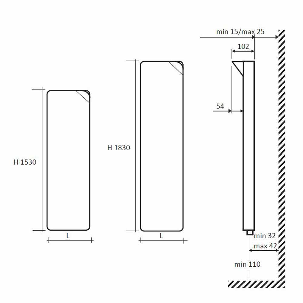 - H 1530 x L 375 x Inter. 50 x P 48 mm x Output w (At50 °) 385; Udbytte w (At30 °) 197; Udbytte w (At26 °) 166