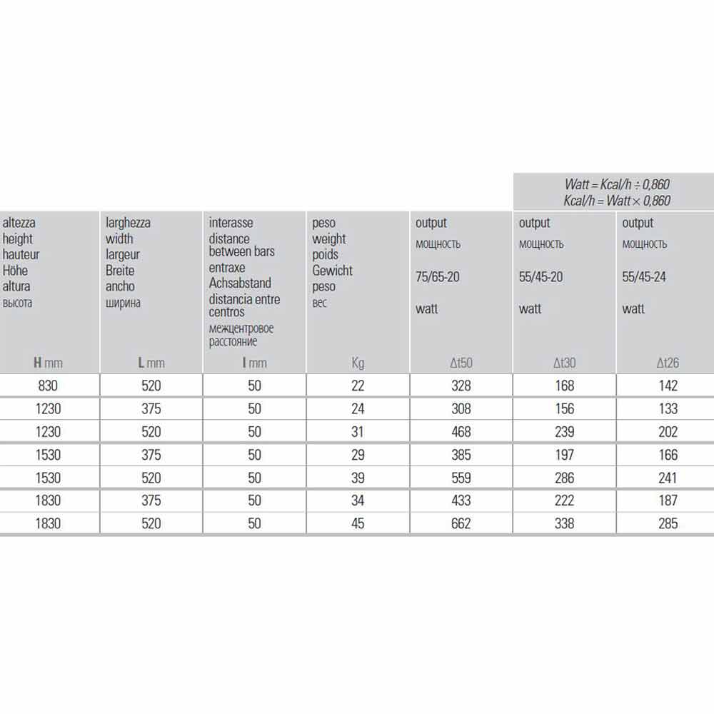 - H 1230 x L 375 x Inter. 50 x P 48 mm x Output w (At50 °) 308; Udbytte w (At30 °) 156; Udbytte w (At26 °) 133