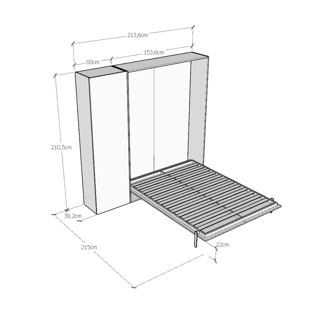 Maksimer pladsen uden at ofre komforten med denne elegante Murphy-seng , perfekt til moderne og funktionelle miljøer. Designet med fokus på praktisk anvendelighed og stil, er denne seng den ideelle løsning til studiolejligheder, gæsteværelser eller små lejligheder.