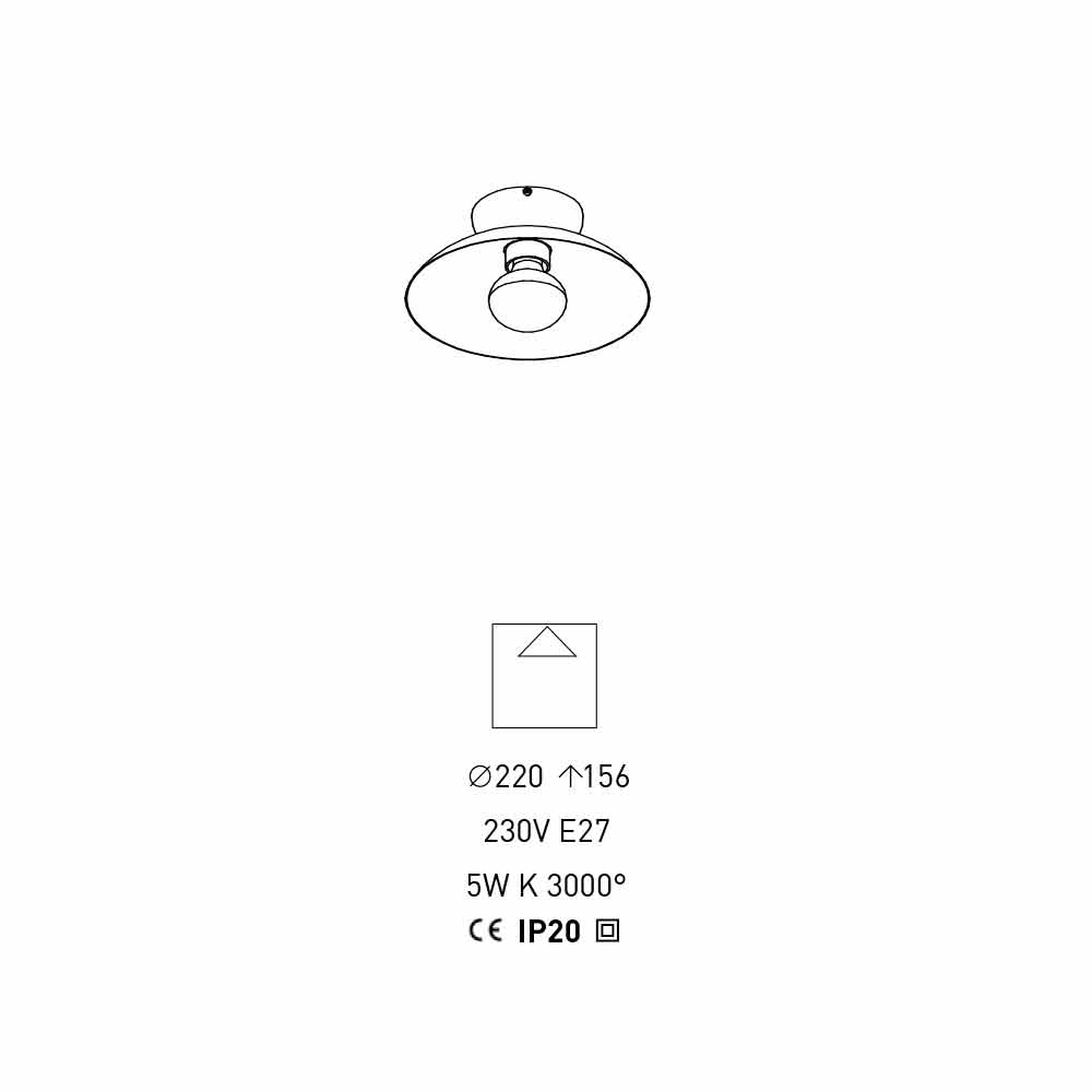 Denne loftslampe er lavet af matsort metal beriget af den sfæriske glaspære med guldfarve detaljer. Dens design er kendetegnet ved brugen af sfæriske former, der giver lampen sinuositet og harmoni , og skaber samtidig vidunderlige lysspil og intime og imødekommende atmosfærer.
