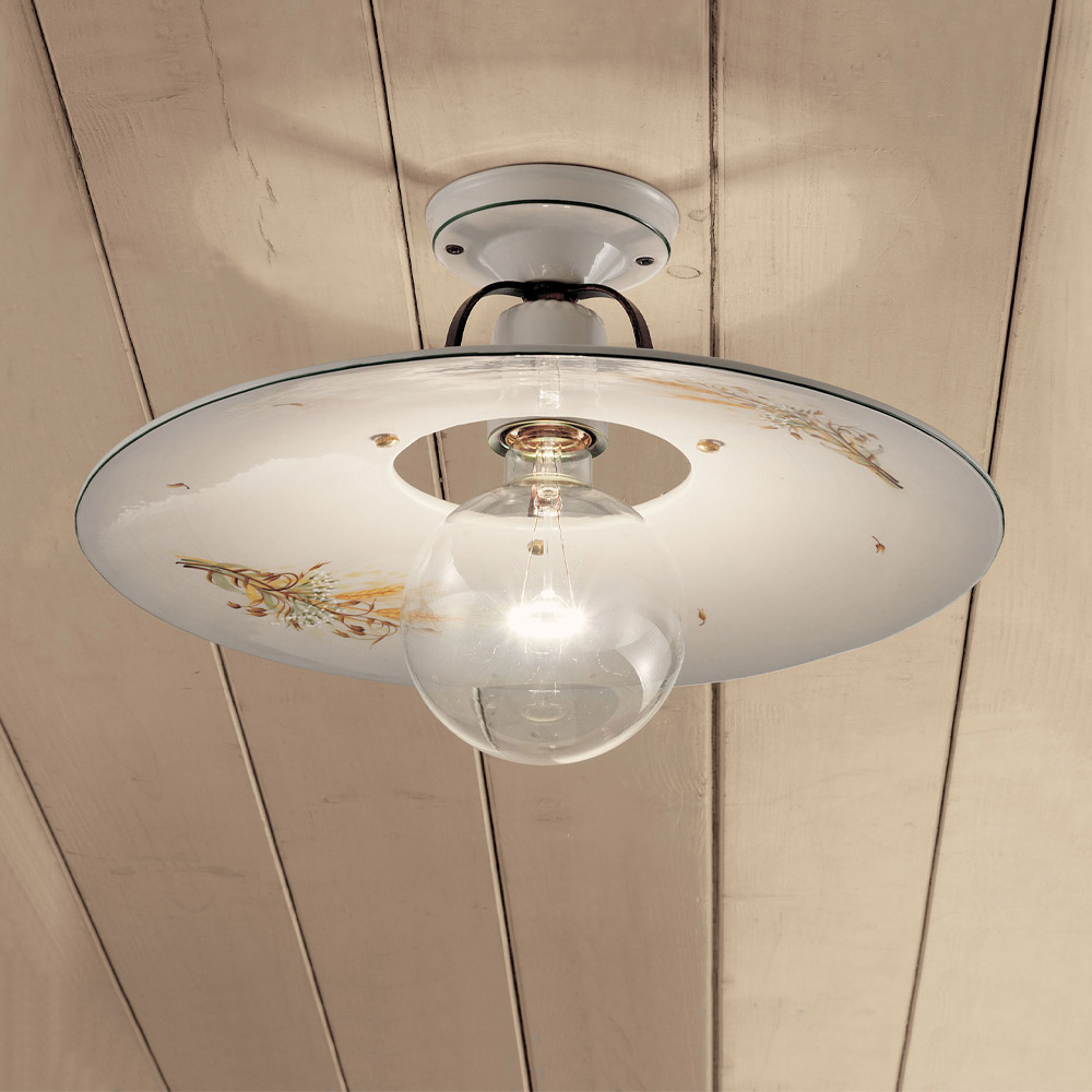Vintage loftslampe i groft jern og keramik med hånddekorationer, 2 størrelser lavet i Italien af Ferroluce.