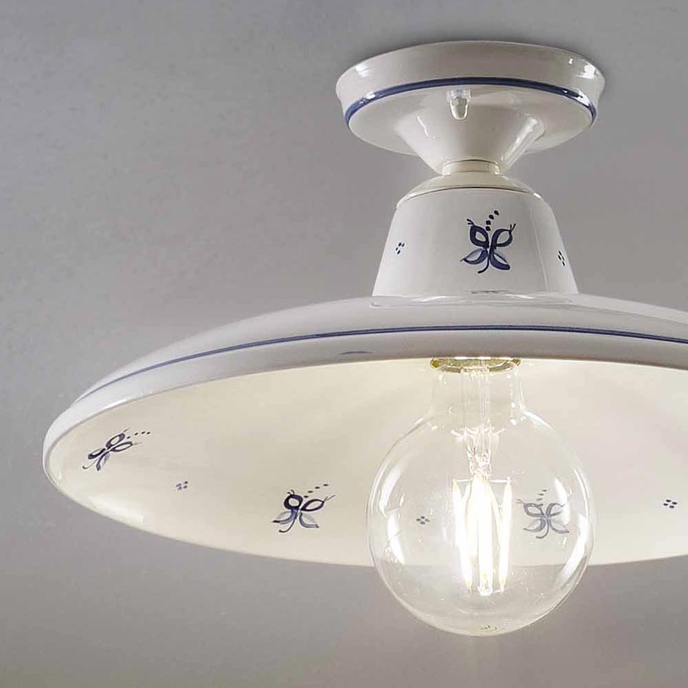 Hånddekoreret loftslampe i jern og keramik, lavet i Italien af Ferroluce.