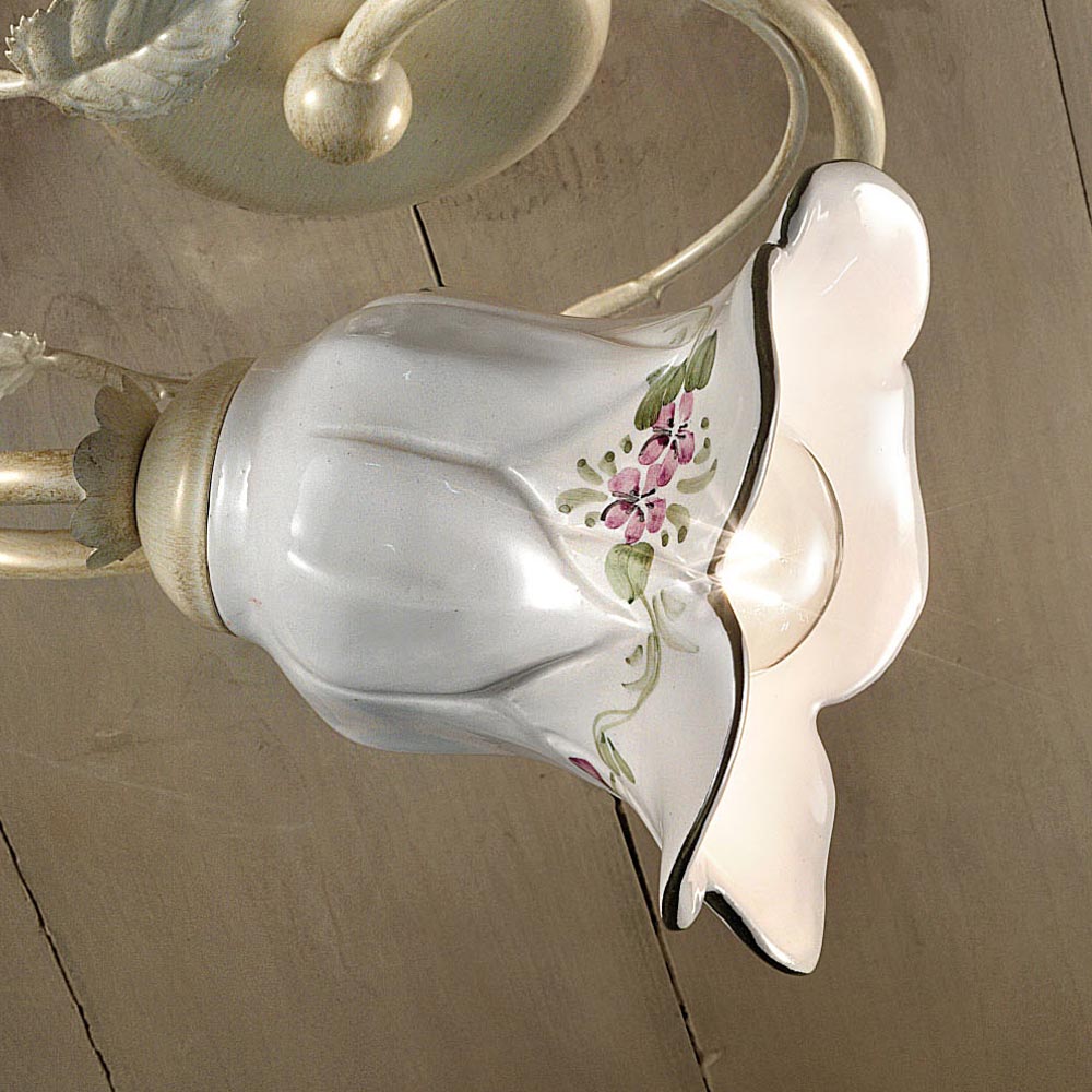 Loftslampe i metal og keramik med håndmalede roser lavet i Italien af Ferroluce.