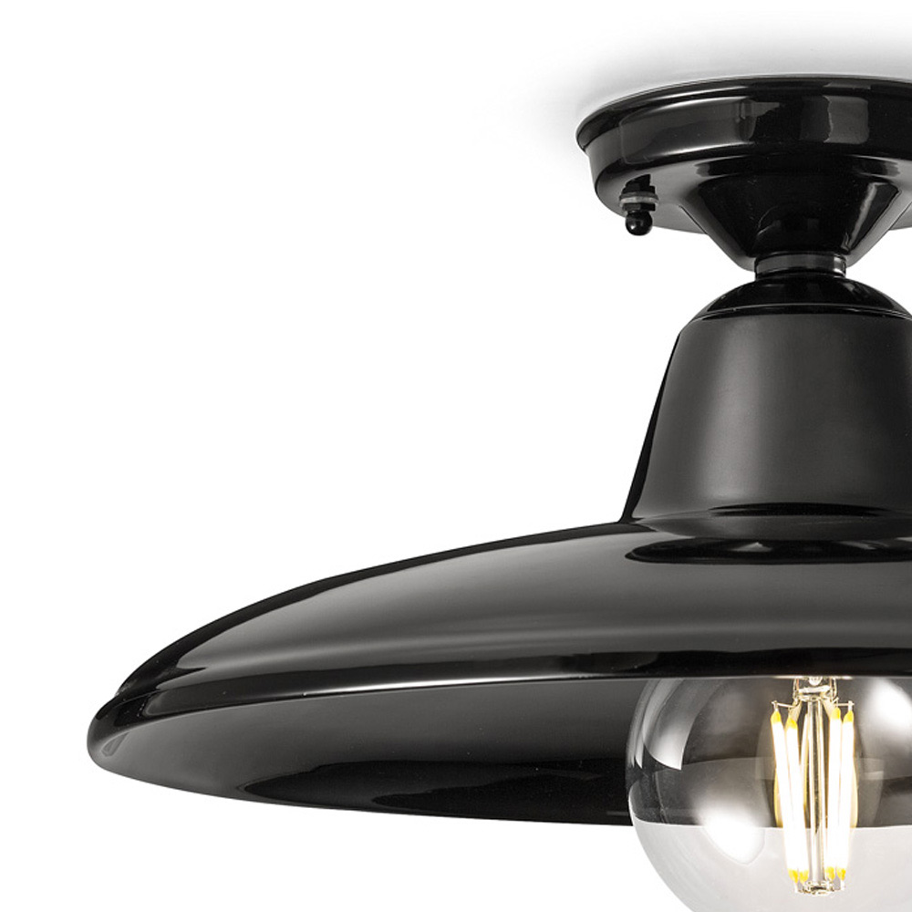 Retro stil sort eller hvid keramik og jern loftslampe lavet i Italien af Ferroluce.