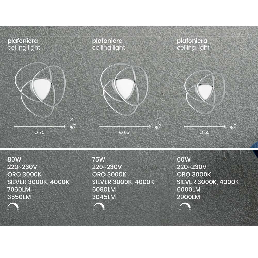 - diameter 55 x H 8,5 cm (LED 60W 220-230V 3000K 6000LM).