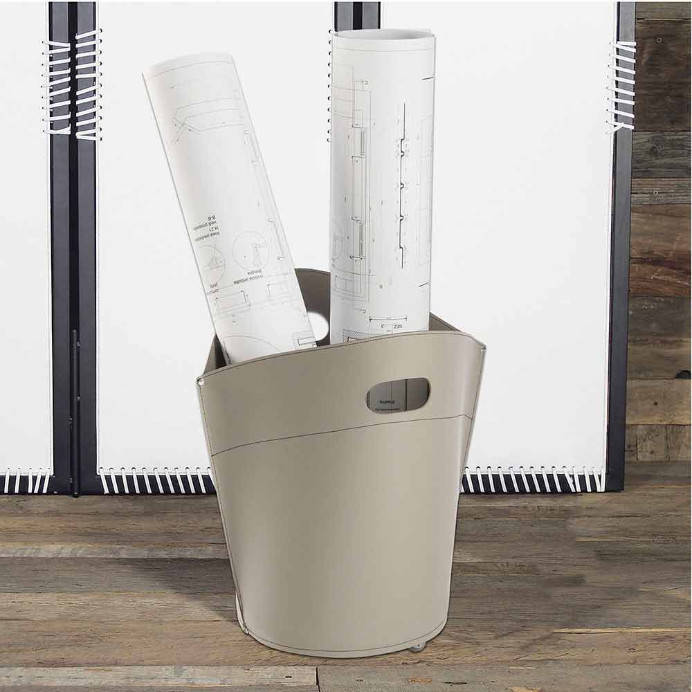 Træstamme taske i læder, træbund på jorden med gummihjul.