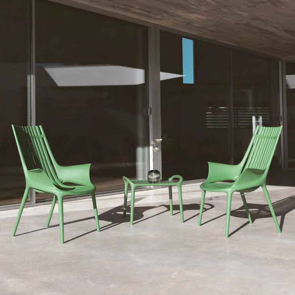 Designet loungestol i virkeligheden er forskellig for sine organiske og elegante linjer, i stand til at passe ind i forskellige sammenhænge, fra ydersiden til indersiden.