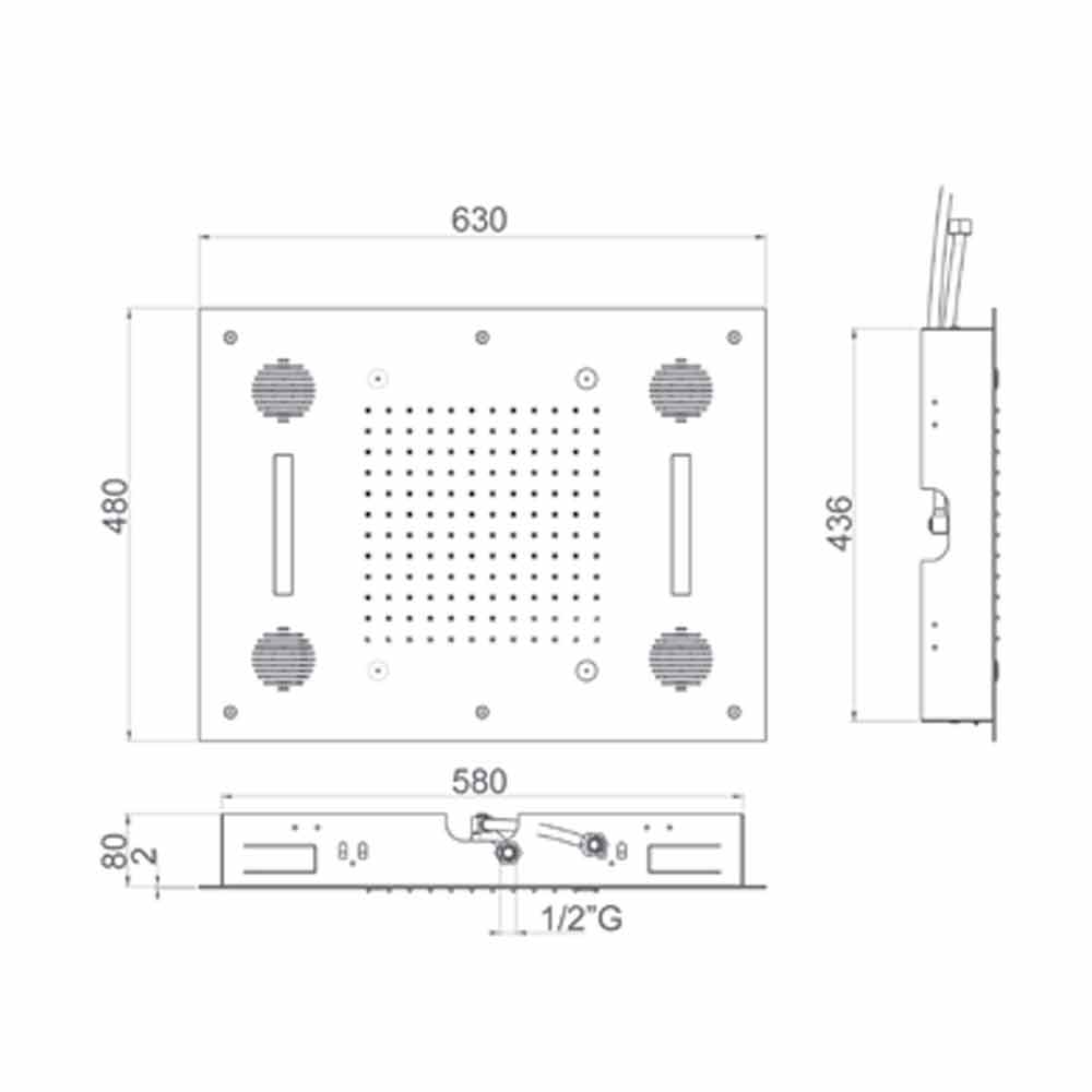 Egenskaber:- Rektangulært brusehoved i anti-kalksten rustfrit stål