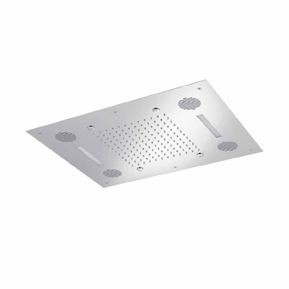 Brusehoved i rustfrit stål med farveterapi og radioadgang, luksusprodukt Made in Italy.