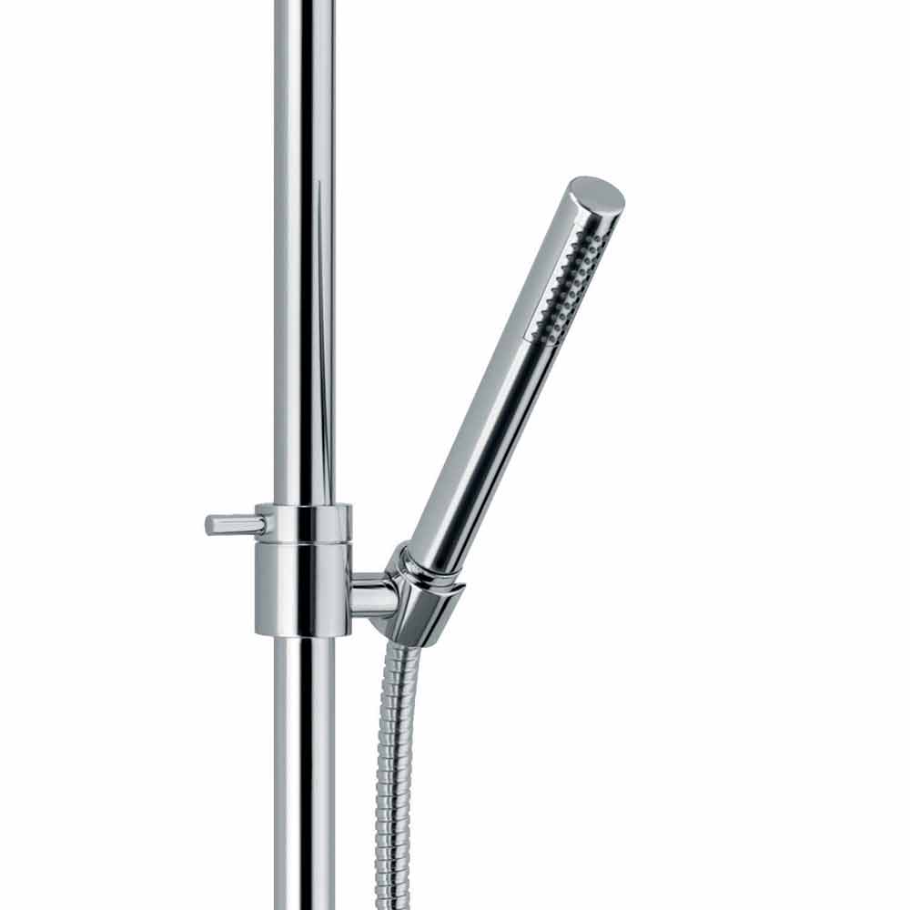 funktionalitet og opnår således en brusersøjle så smuk og raffineret at se, da den er praktisk og nem at bruge. Glidestøtten giver dig mulighed for at justere håndbruserens højde, mens slangen på 150 cm giver dig mulighed for at bruge den på en fuldstændig håndterbar og behagelig måde.