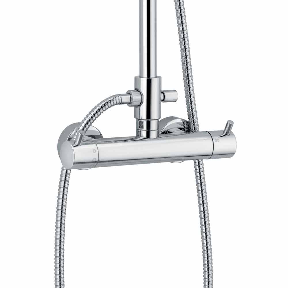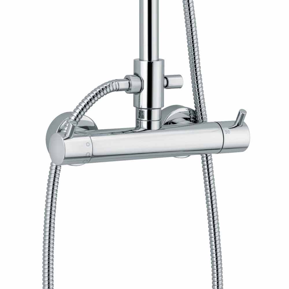 Moderne brusersøjle i forkromet messing med termostatblander Made in Italy.