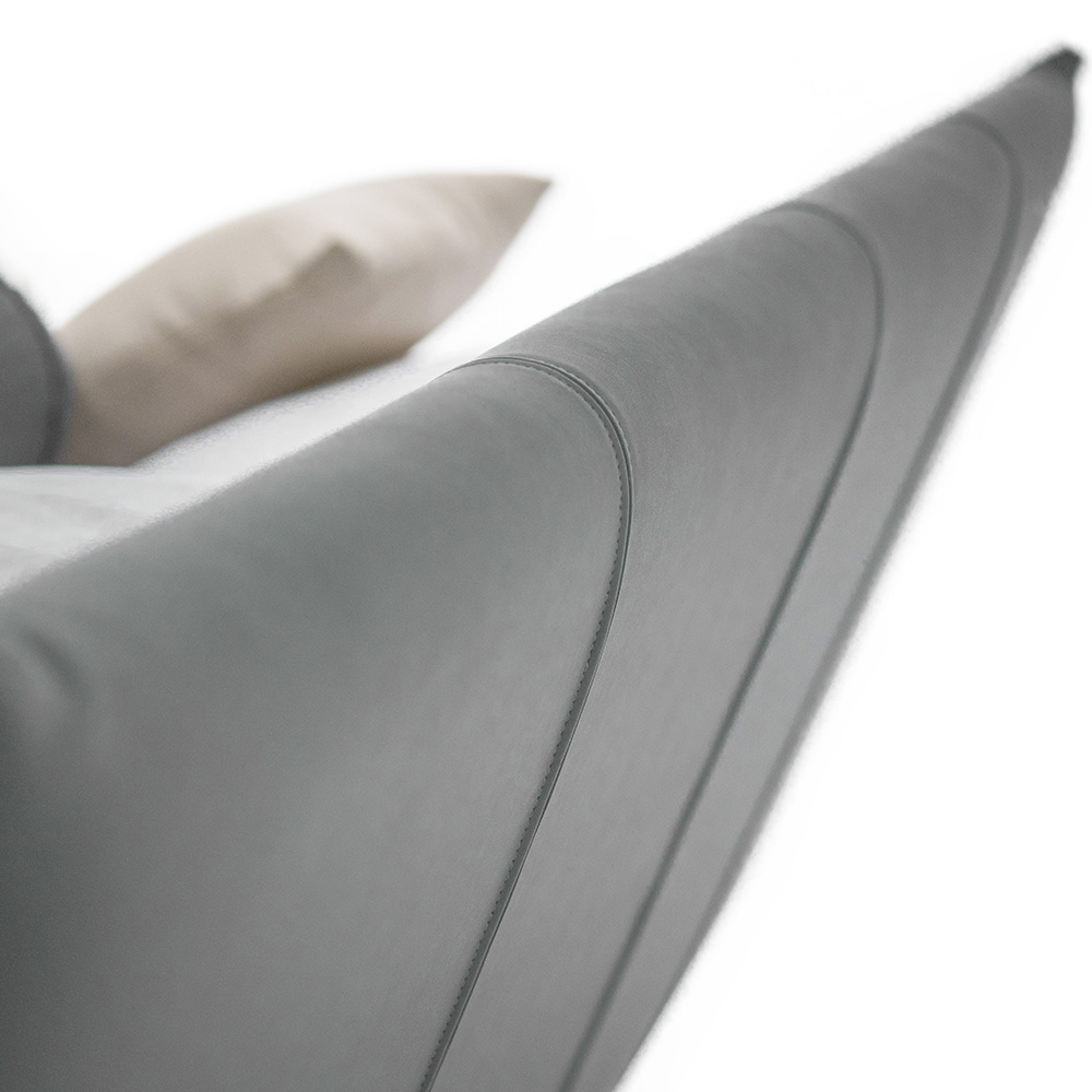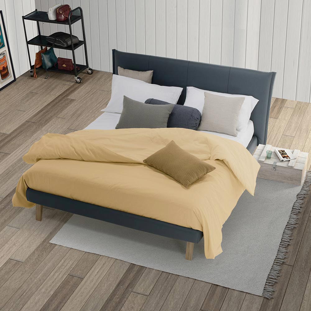 Dobbeltseng af høj kvalitet uden polstret beholder, håndlavet i Italien i stof eller øko-læder.