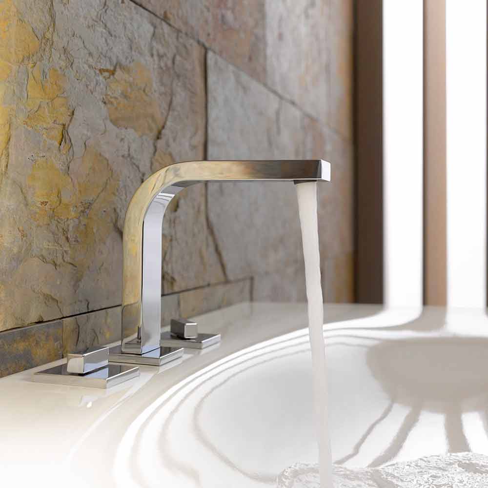 3-huls badeværelse vask mixer lavet af messing med et moderne design.