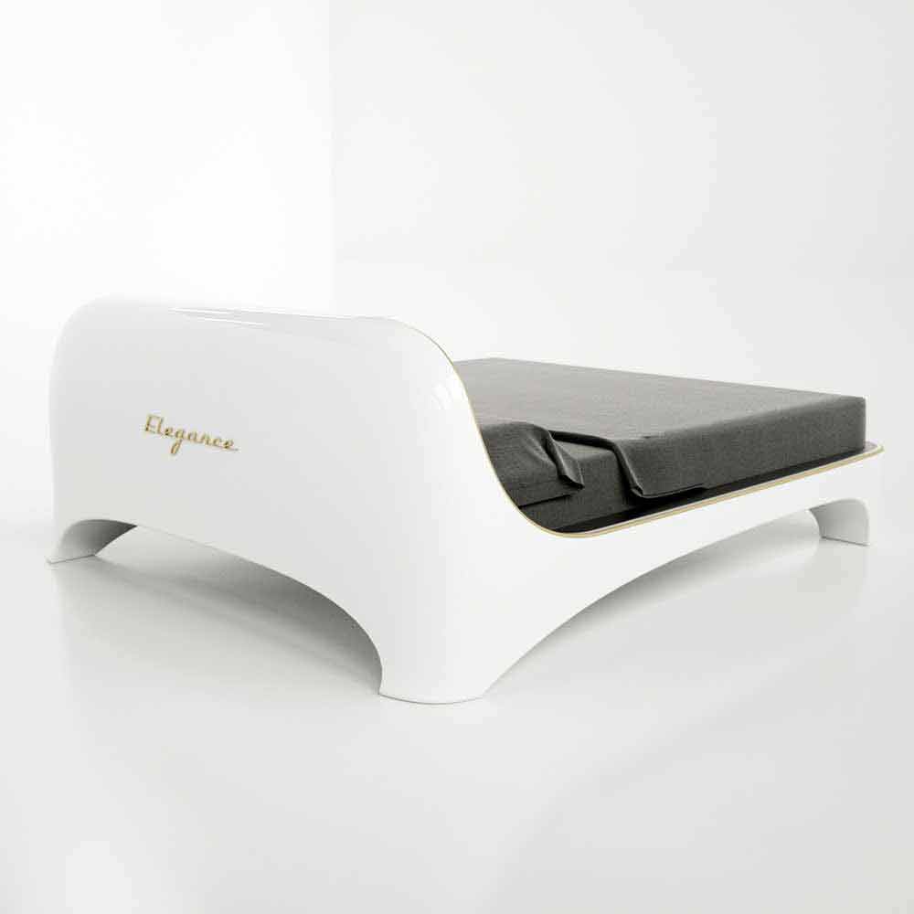 Bløde kurver, kant i guld- eller sølvfarve og polstret sengegavl i læder gør Elegance til en klar hyldest til elegancen og raffinementet fra fortidens biler.
