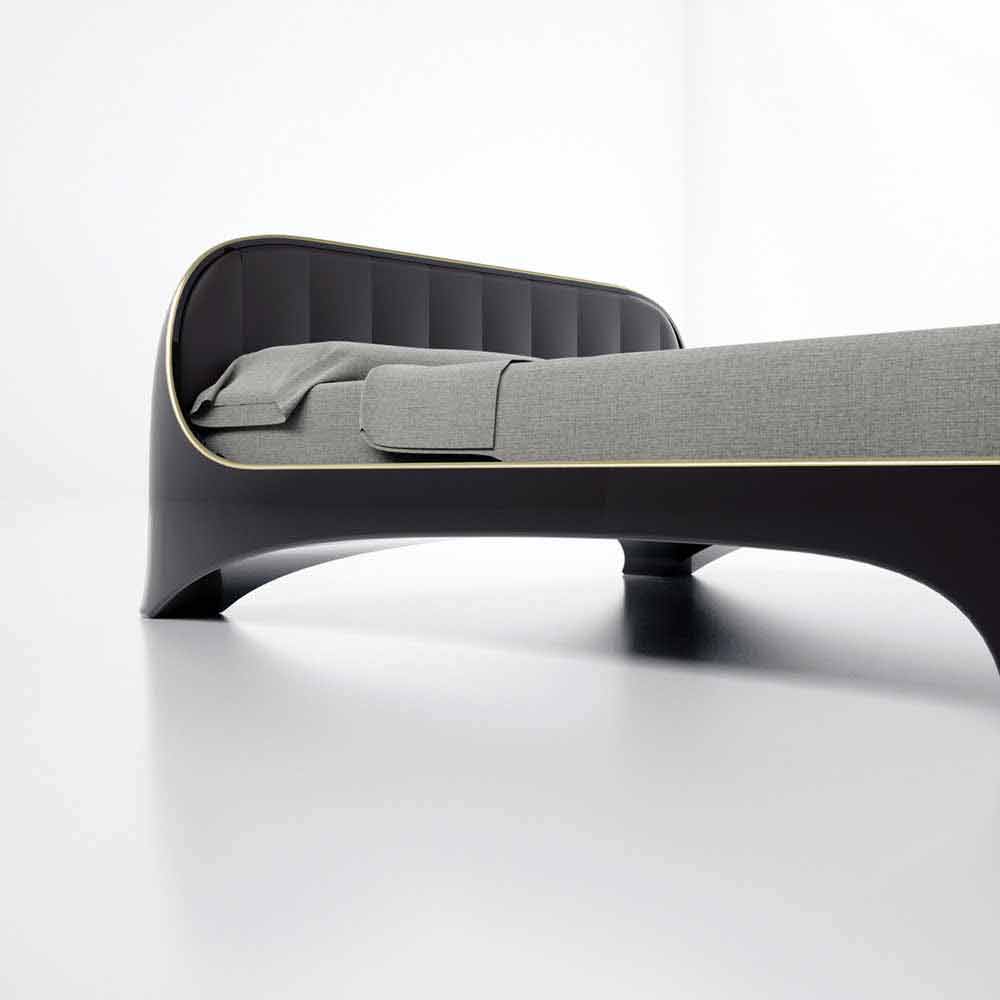 Aggressive linjer, men samtidig nøgternhed og elegance, for en eksklusiv seng, der skal placeres i prestigefyldte miljøer.