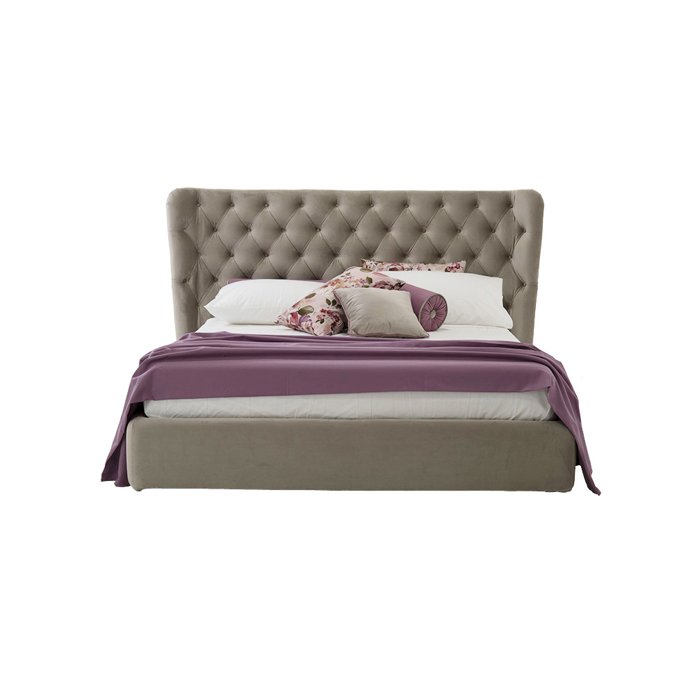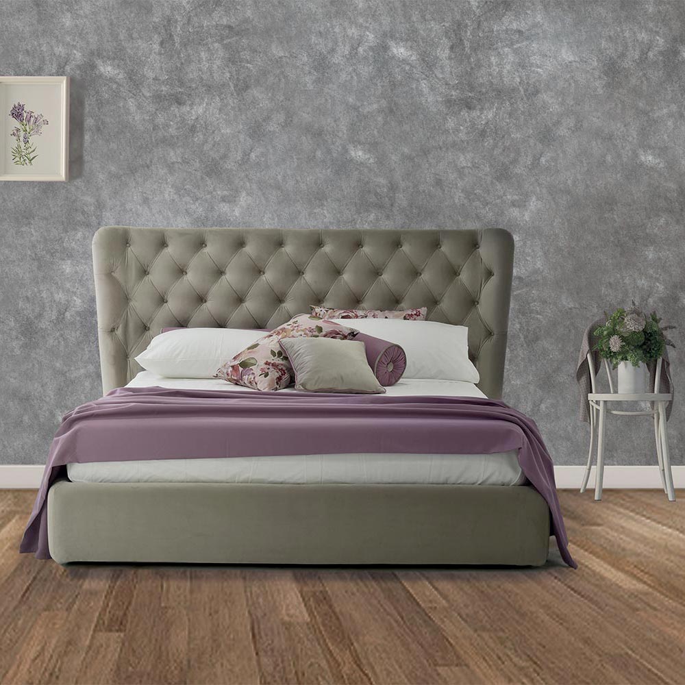 Moderne luksus dobbeltseng med container og capitonnè sengegavl, i stof eller øko-læder håndlavet i Italien.