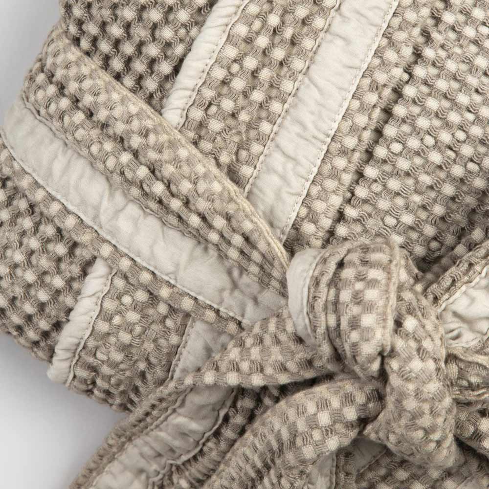 Kimono i linned og bomuld med bikagebehandling, raffineret luksusdesign fremstillet i Italien.