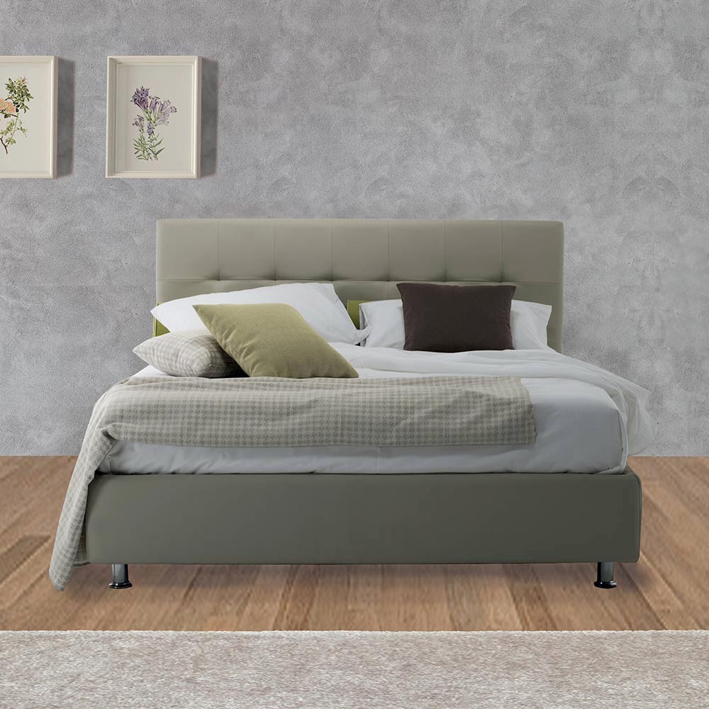 Dobbeltseng af høj kvalitet med opbevaringsboks, håndlavet i Italien i stof eller øko-læder.