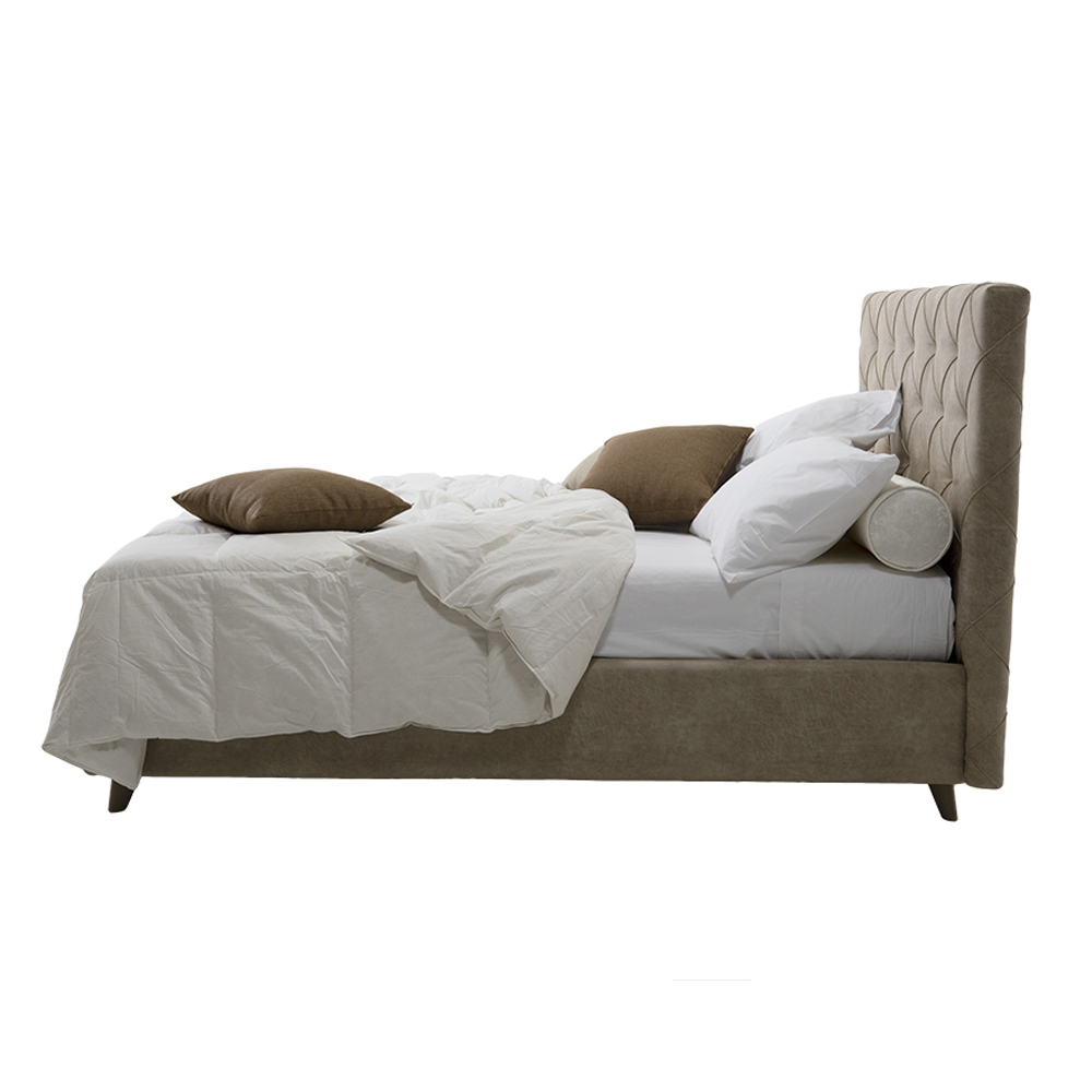 Dobbeltseng med opbevaringsboks i højkvalitets stof eller øko-læder, håndlavet i Italien.