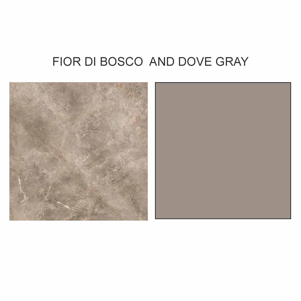 ash trælister i sort grå finish struktur er placeret. Toppen har derimod en rund form og er lavet af poleret marmor-effekt stentøj.