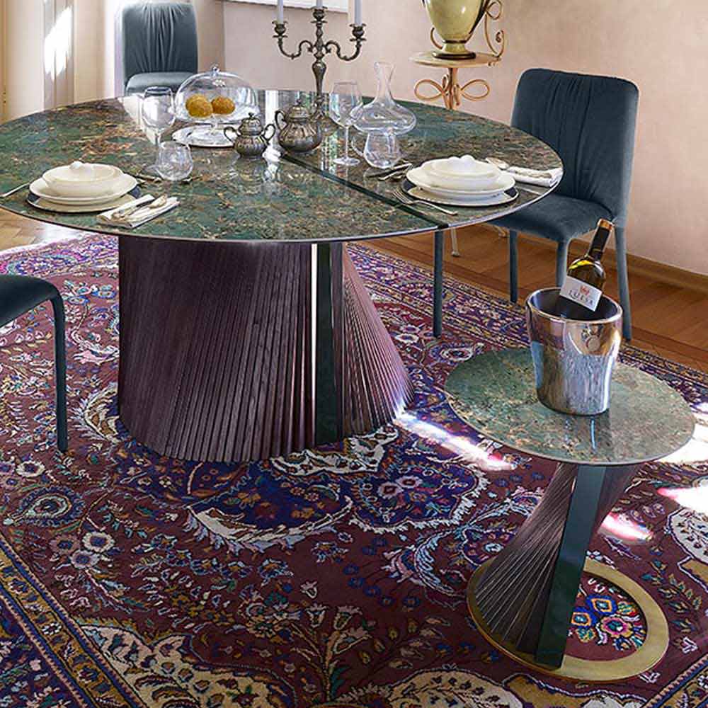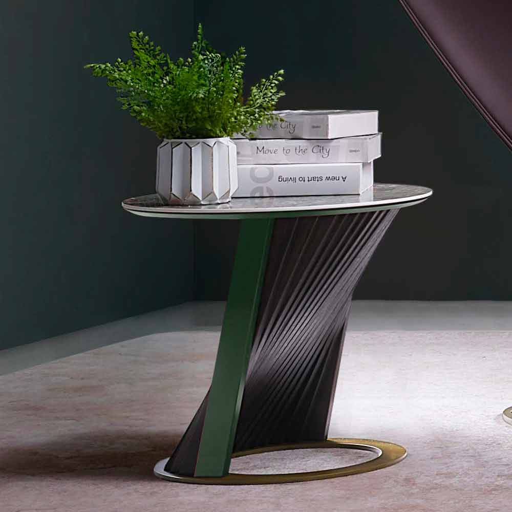 Design sofabord med rund plade i marmor-effekt stentøj, luksusartikel Made in Italy.