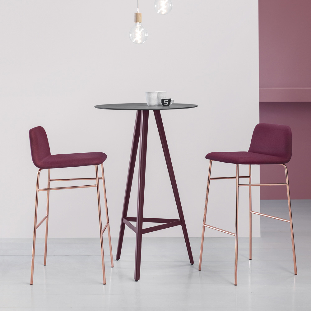 Høj skammel fremstillet i Italien med malet metalstruktur og polstret skal betrukket med stof . Enkle linjer løber gennem figuren af dette supplement med en moderne sjæl designet og skabt til dem, der søger en minimal løsning uden at skulle opgive et originalt og moderne design. Det, der er født, er et sæde, der takket være brugen af kvalitetsråmaterialer forener funktionalitet og stil og formår at fuldende indretningen af rummet med en unik personlighed og en konkret elegance.
