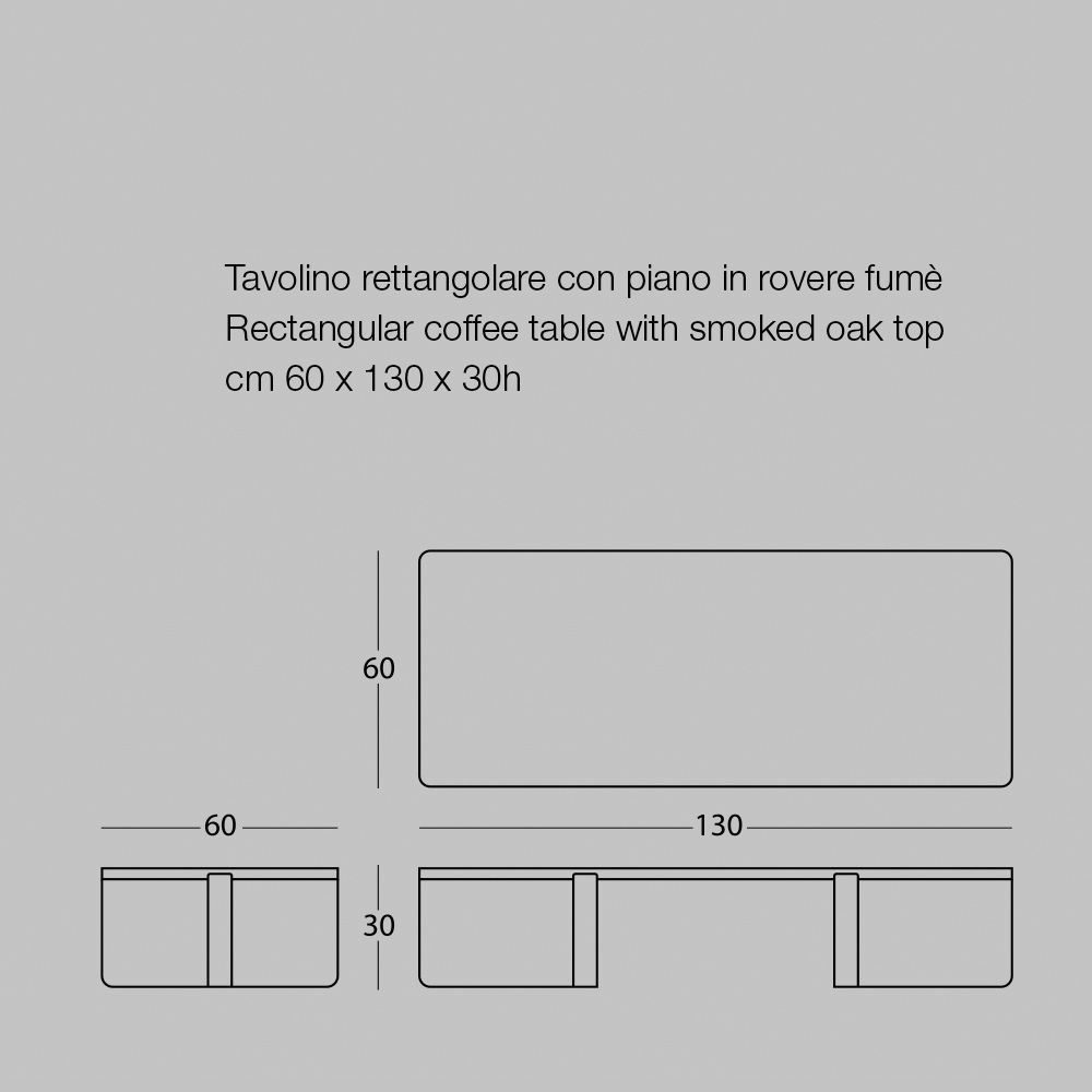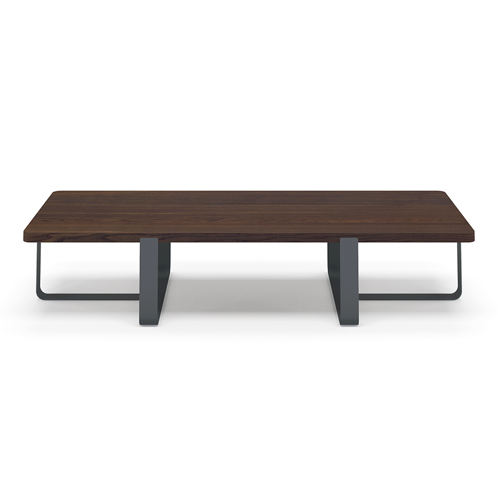 Lavt sofabord til stue med rektangulær finerplade og farvet metalbund, luksus lavet i Italien.
