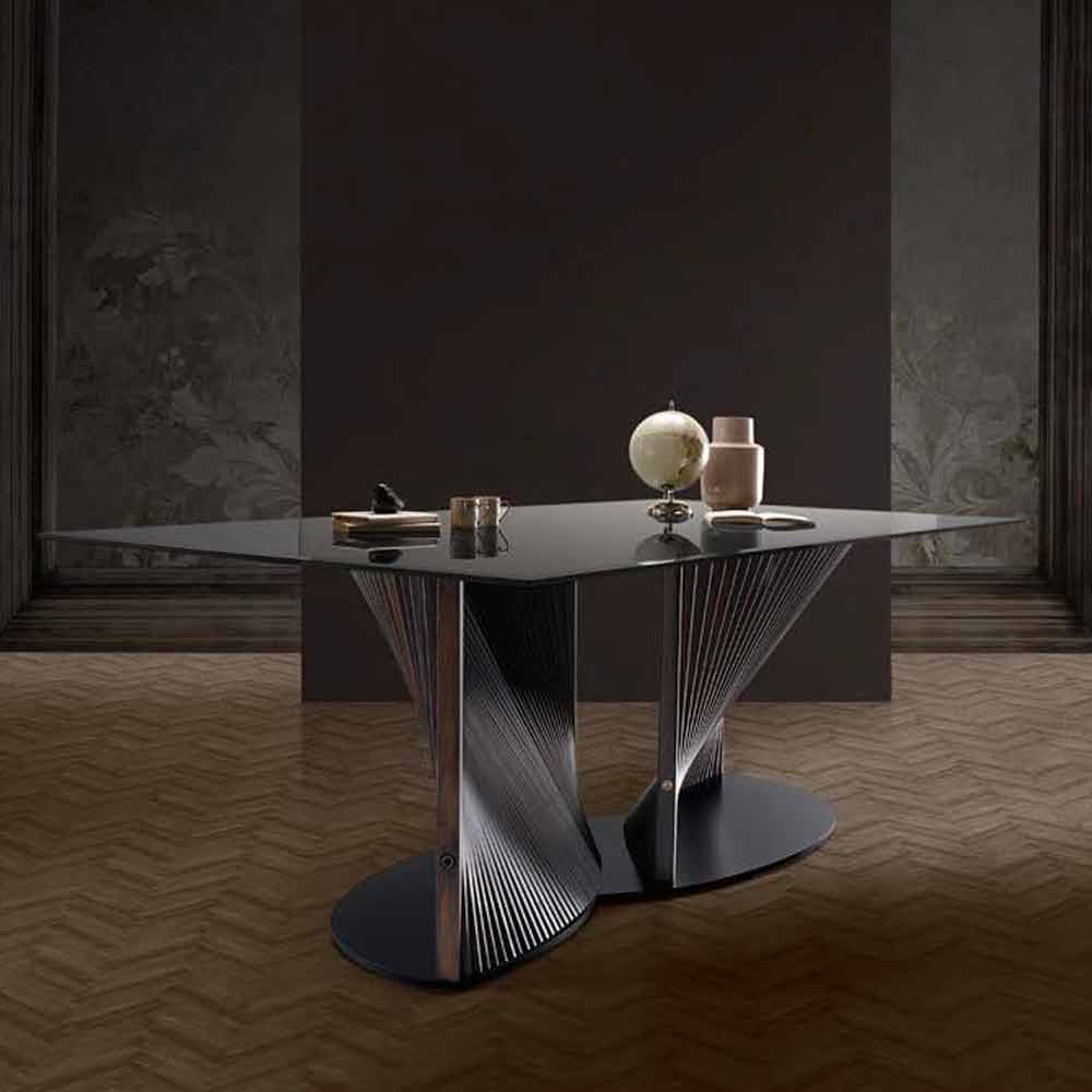 Elegant design spisebord lavet af røget glas og træ, høj kvalitet Made in Italy.