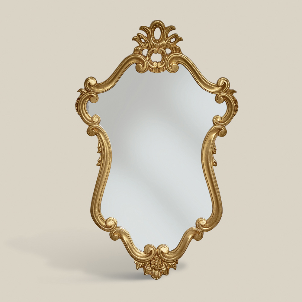 Elegant spejl med en klassisk og barok stil præget af en formet ramme afsluttet med raffineret bladguld , ideelt til at dekorere ethvert miljø med personlighed og originalitet. Et unikt og raffineret supplement, fuldstændig fremstillet i Italien af dygtige håndværkere , kunstmestre, der afslutter hvert komplement med visdom og smag for elegance. Produktionen udføres ved hjælp af fine materialer og udfører arbejdet i hånden med den største omhu og professionalisme, der kendetegner Made in Italy- produkter.