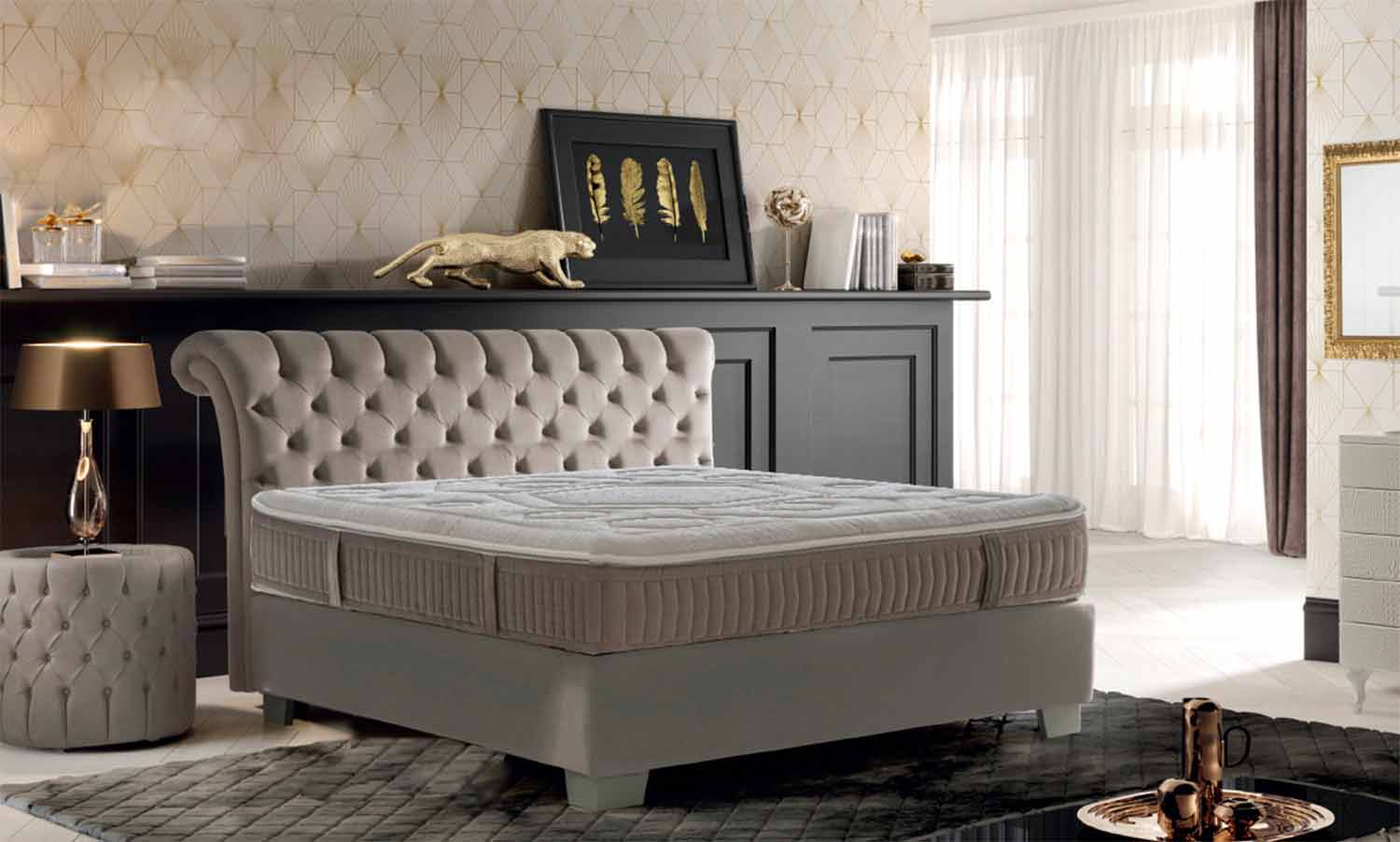 Vitamin dobbeltmadras 25 cm høj med aftageligt betræk og polstret belægning, håndlavet i Italien.