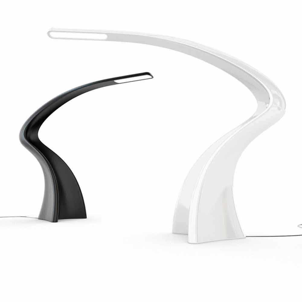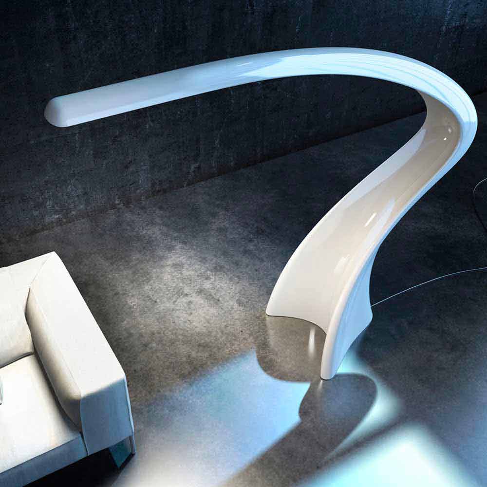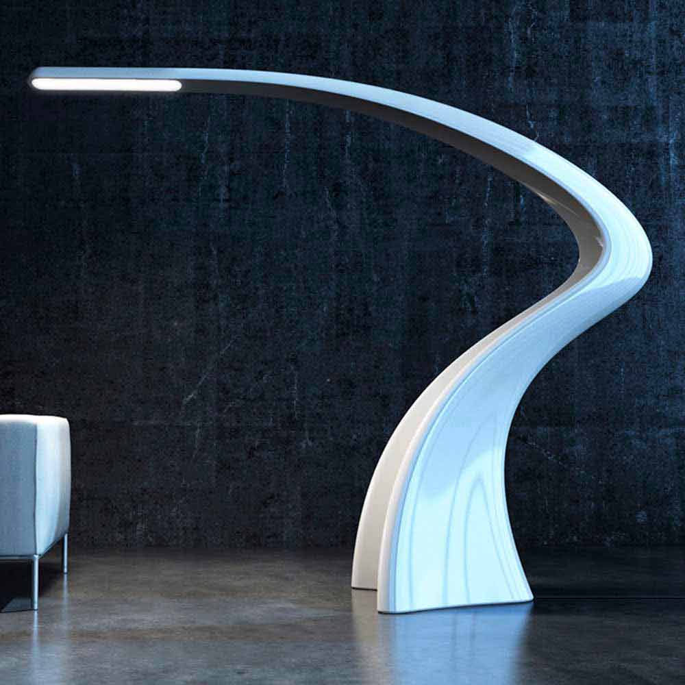 Stor monolitisk gulvlampe med en slank og flydende form lavet af Solid Surface ;.