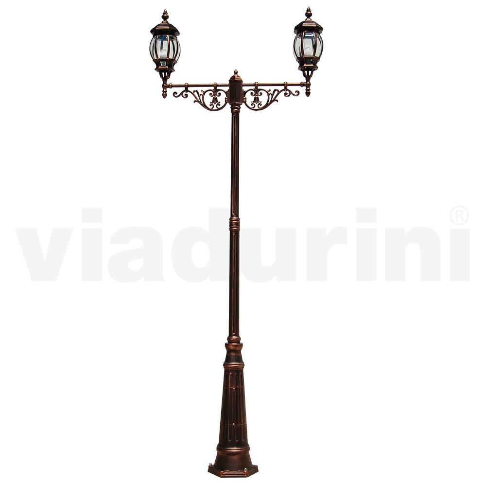Gadelampe i vintage stil med 2 lys med aluminiumsstruktur Fremstillet i Italien.