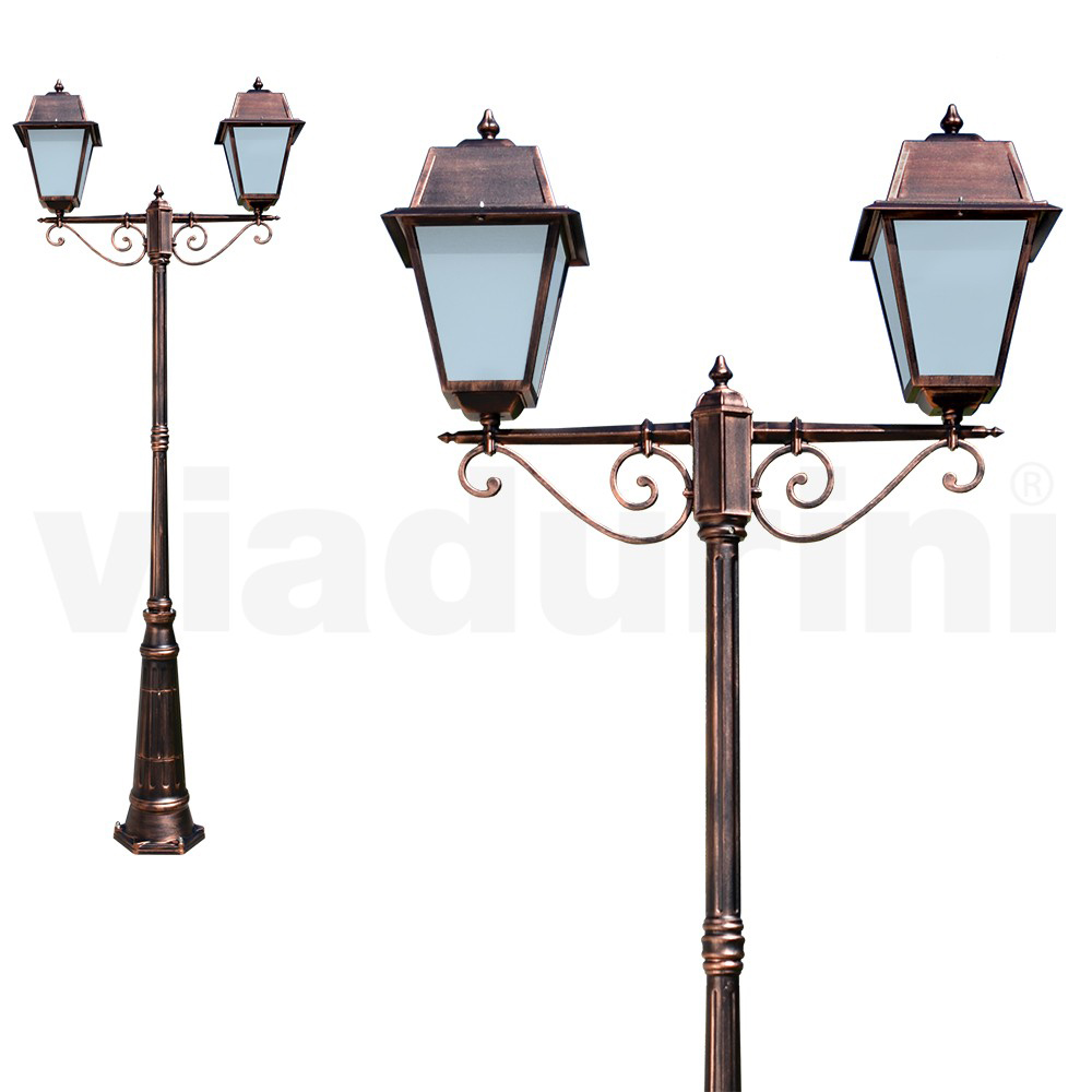 2-lys havelampe i aluminium med glasafskærmning Made in Italy.