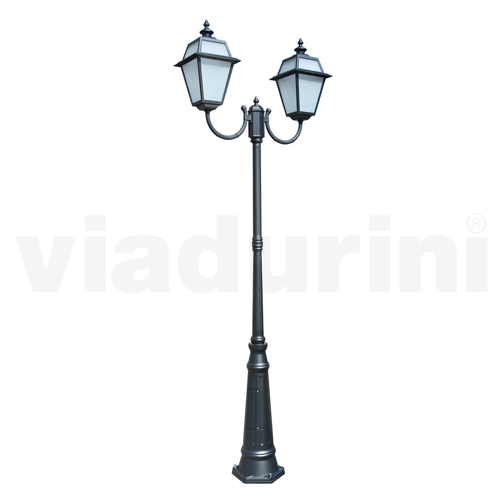 Vintage 2-lys lygtepæl i aluminium og glas Made in Italy.