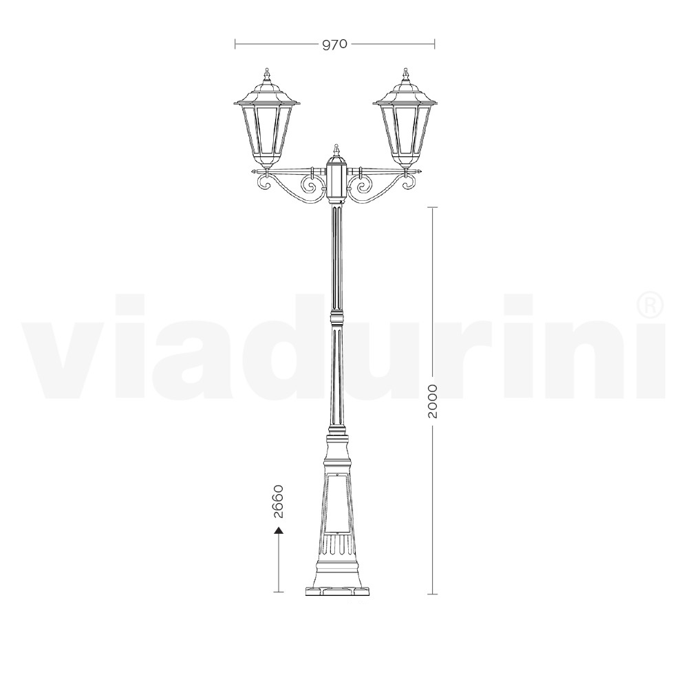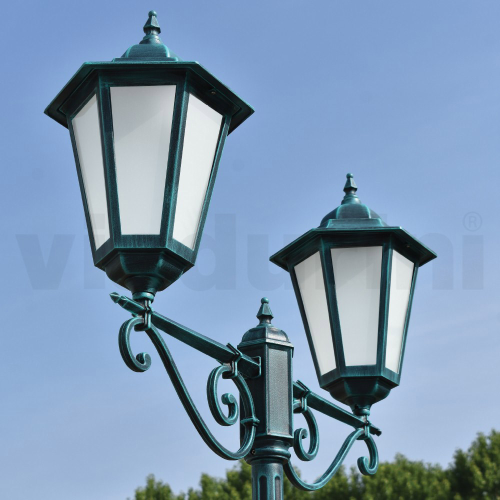 2-lys gadelampe i vintagestil med glasdiffusor Fremstillet i Italien.