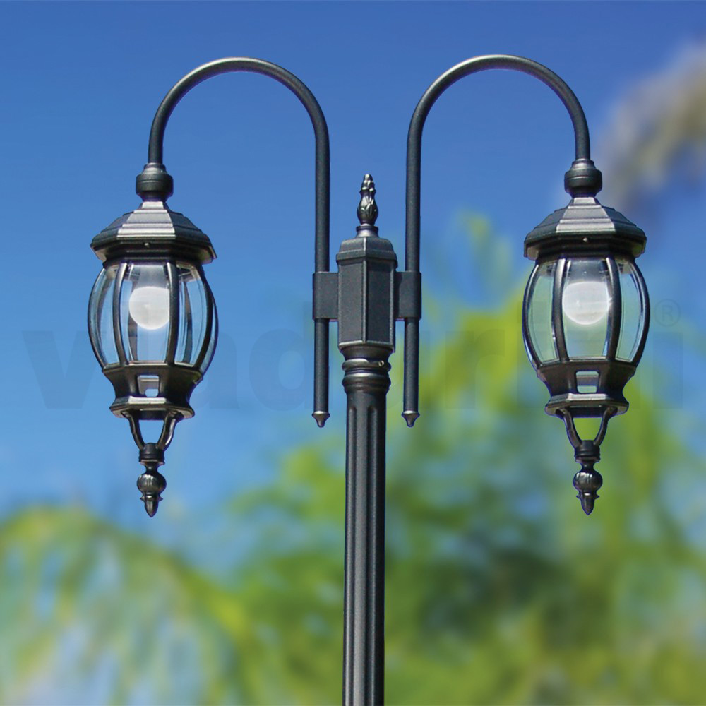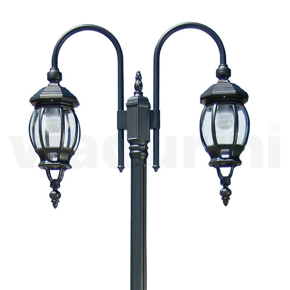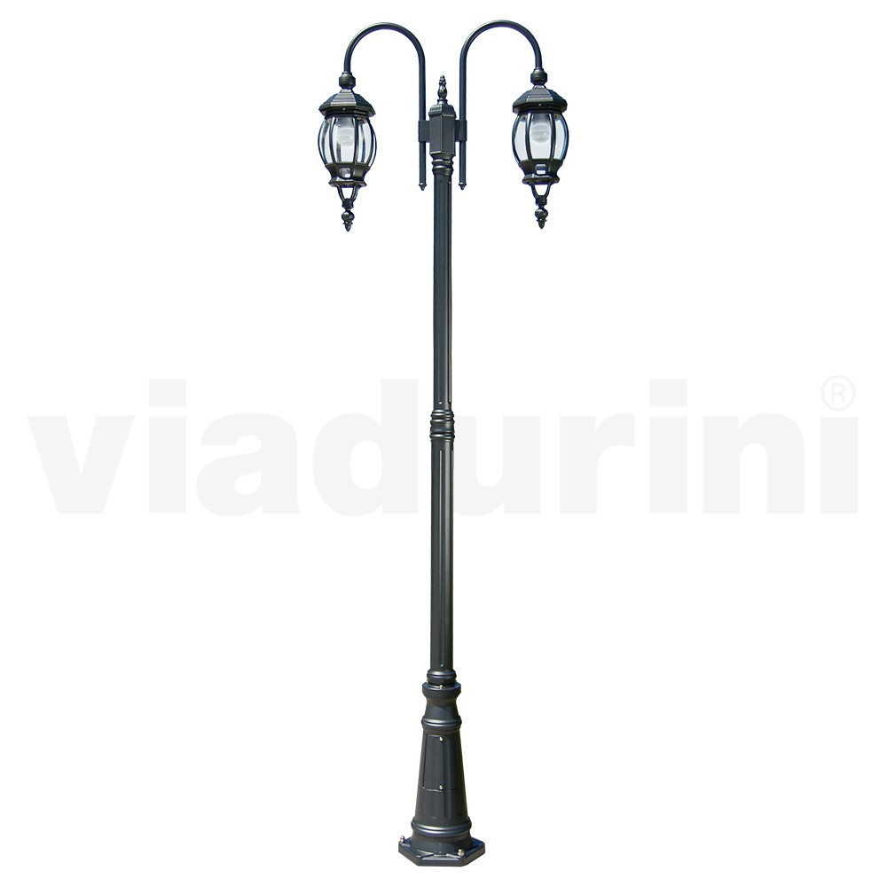 Vintage gadelampe med 2 lys i gråt aluminium og polycarbonat Fremstillet i Italien.