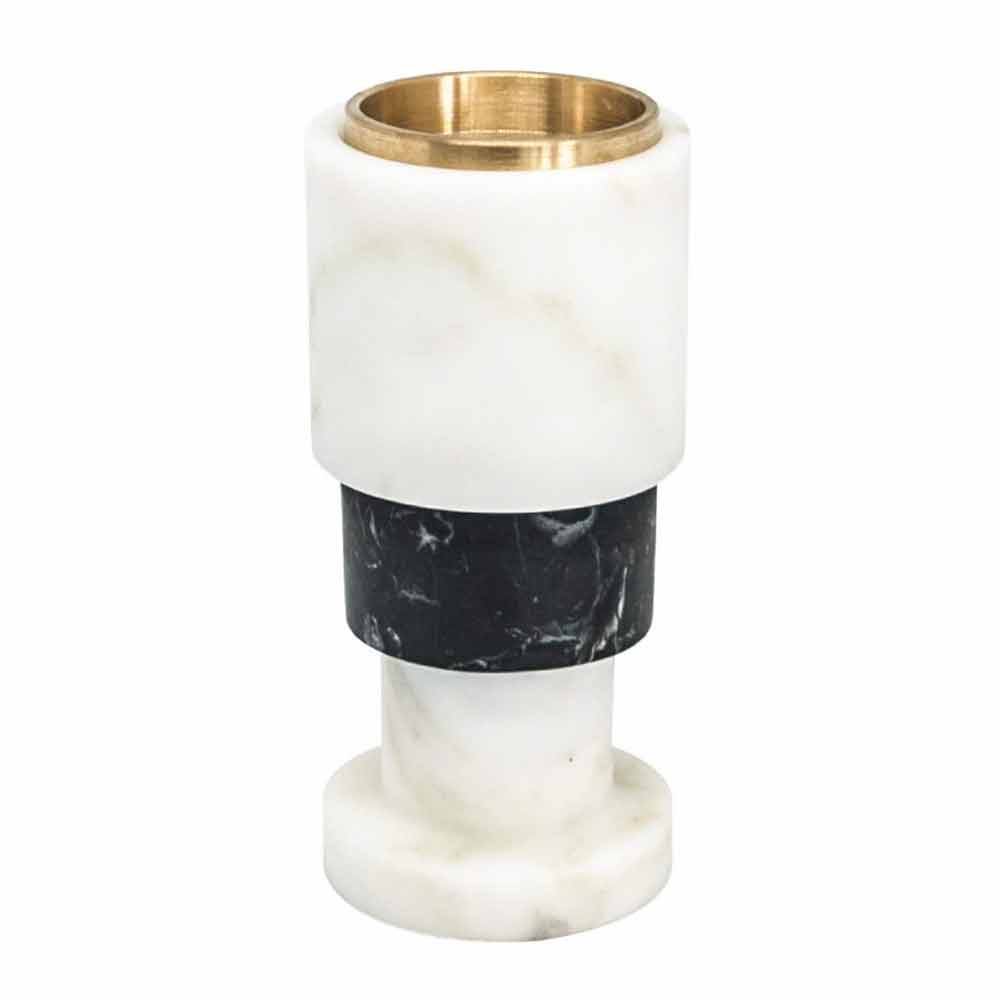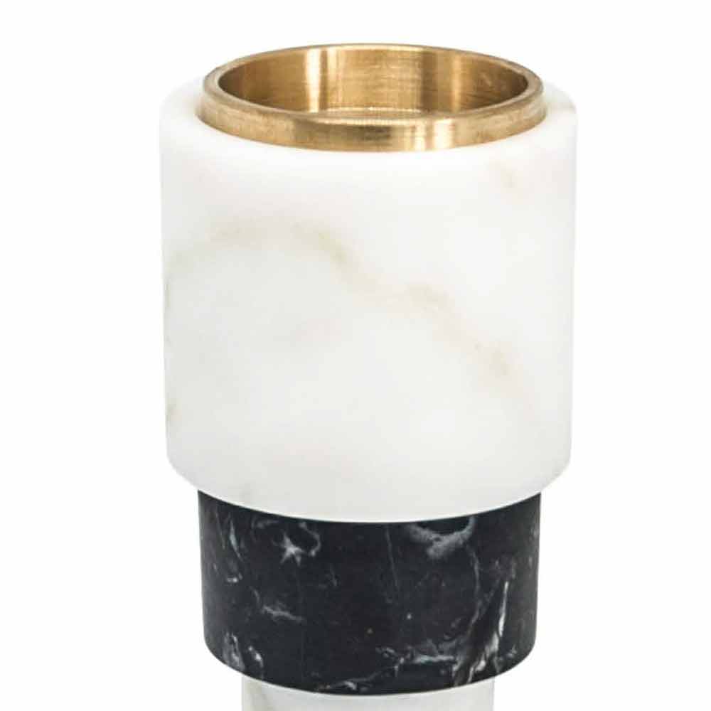 Design lysestage lavet af hvid Carrara marmor, sort Marquinia marmor og messing Made in Italy.
