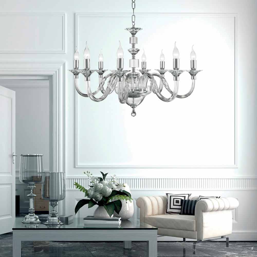 Klassisk lysekrone 12 lys i italiensk håndlavet glas og metal - Memore